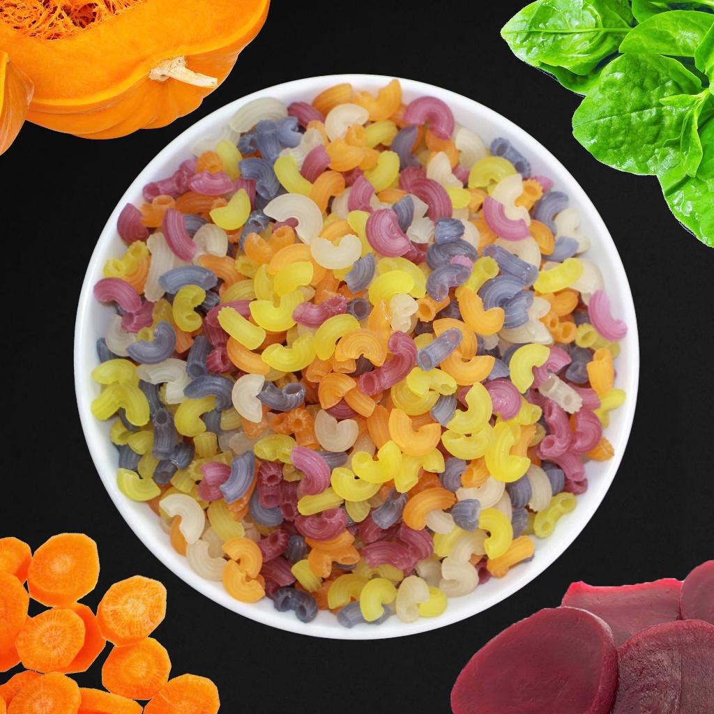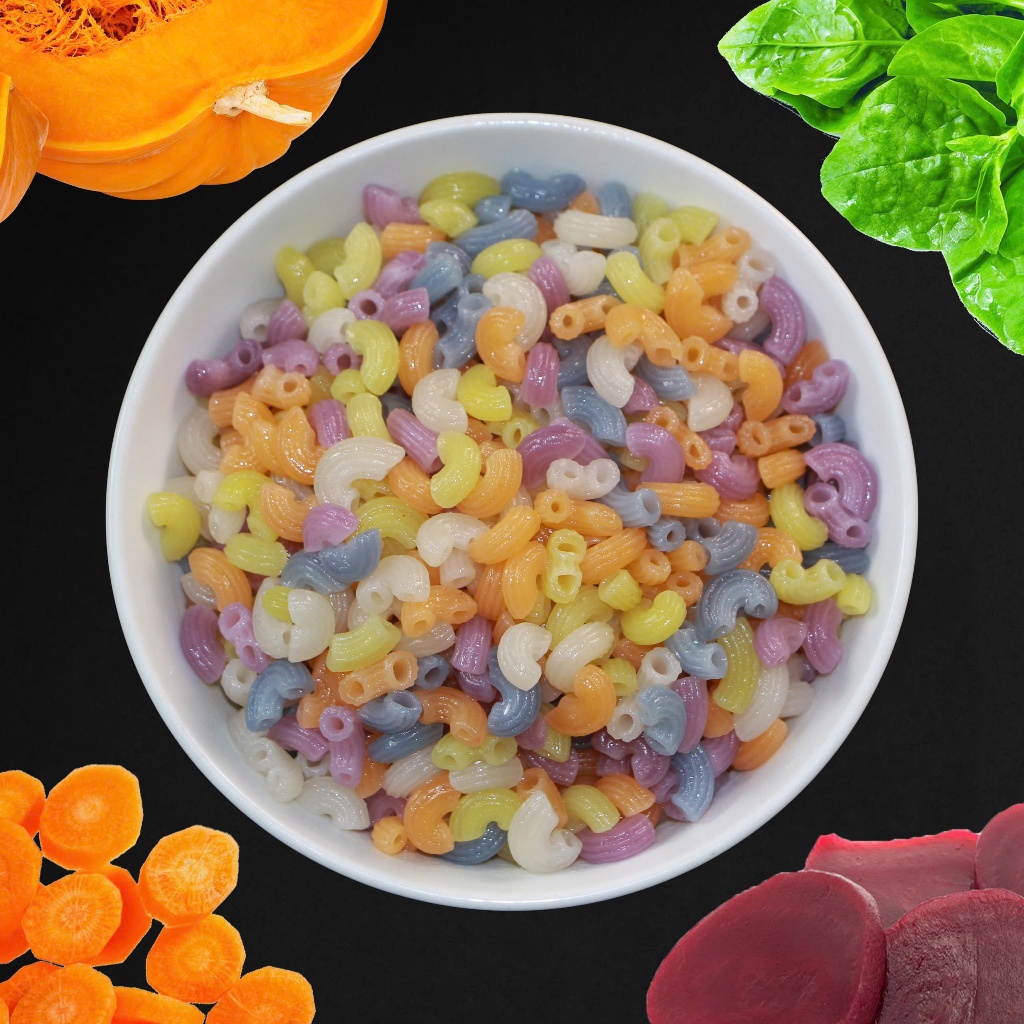 • Nui Sala ngũ sắc cho gia đình HÌNH CHỮ C phù hợp với các món xào, món canh, soup, salad, đút lò phô mai...được làm từ nguyên liệu tự nhiên chiết xuất từ 5 màu rau củ bổ sung dinh dưỡng cho cả gia đình