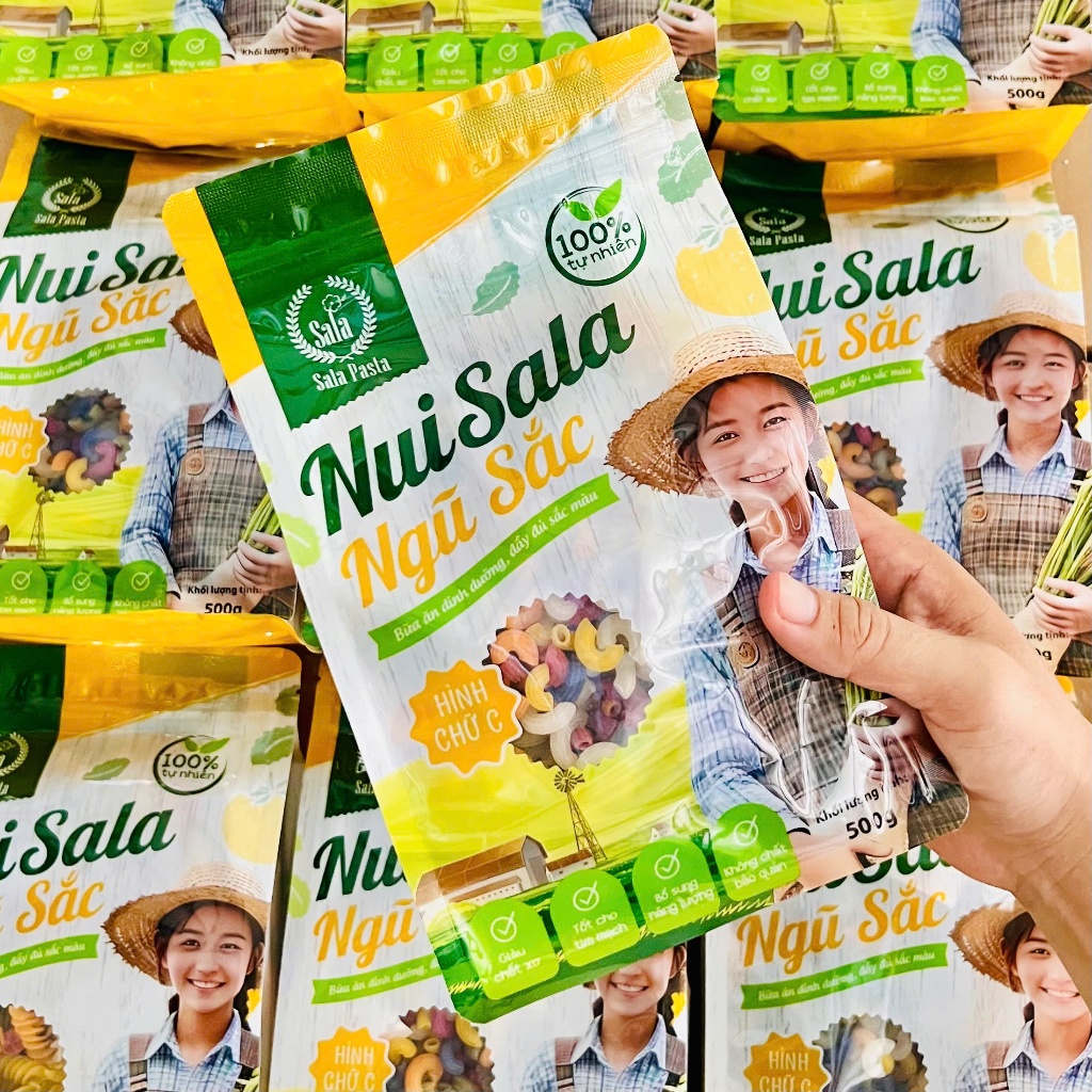NUI SALA NGŨ SẮC HÌNH CHỮ C Giàu Chất Xơ, Bổ Sung Dinh Dưỡng Cho Cả Nhà Túi Zip 500g Chuẩn Chính Hãng 1. Thông Tin Sản Phẩm: - Nui Sala Ngũ Sắc Hình Chữ