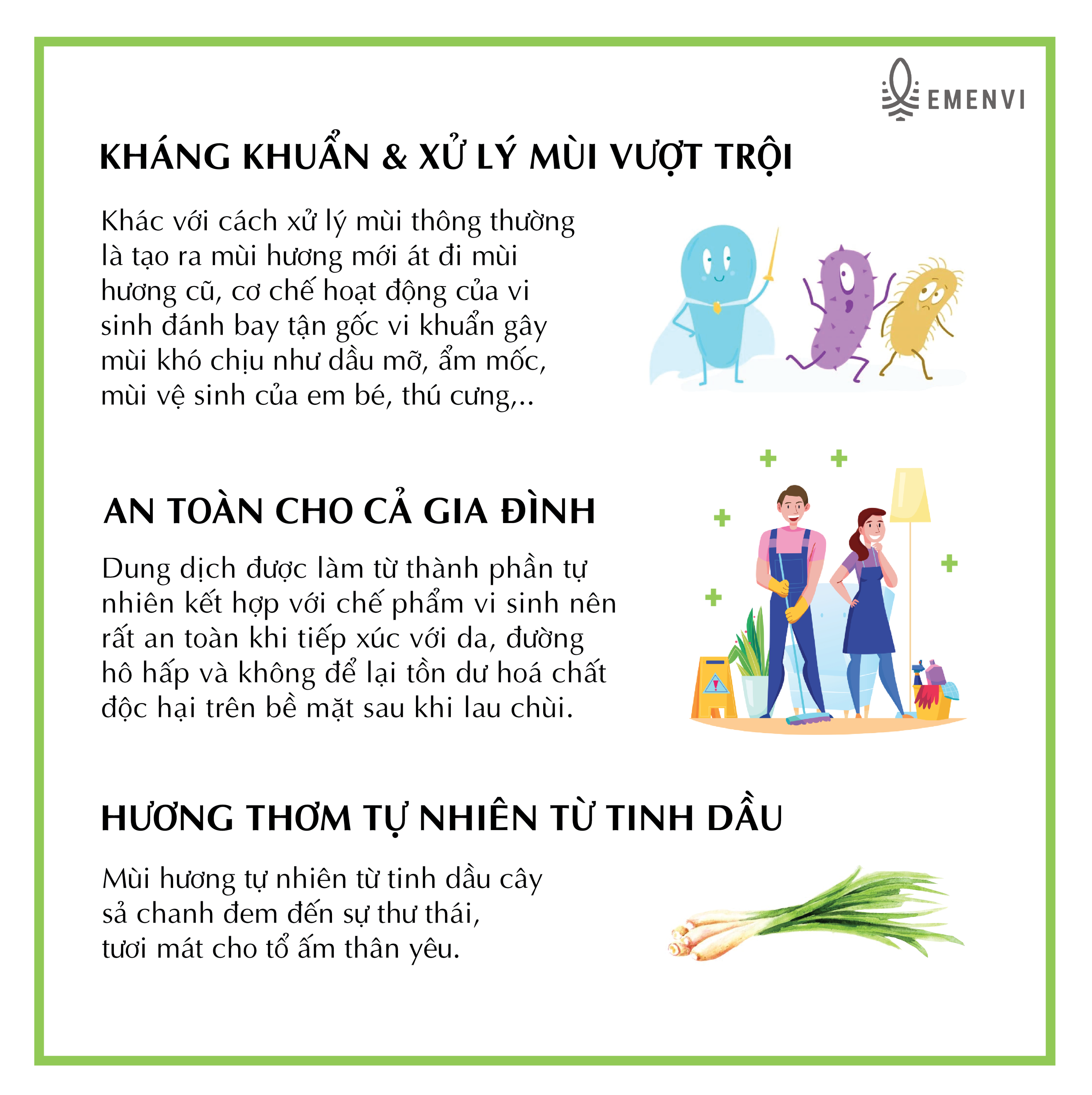 - Hệ vi sinh có lợi giúp phân huỷ và xử lý triệt để các mùi hôi khó chịu, mùi lạ mảng bám, đặc biệt là nấm mốc lâu ngày.
