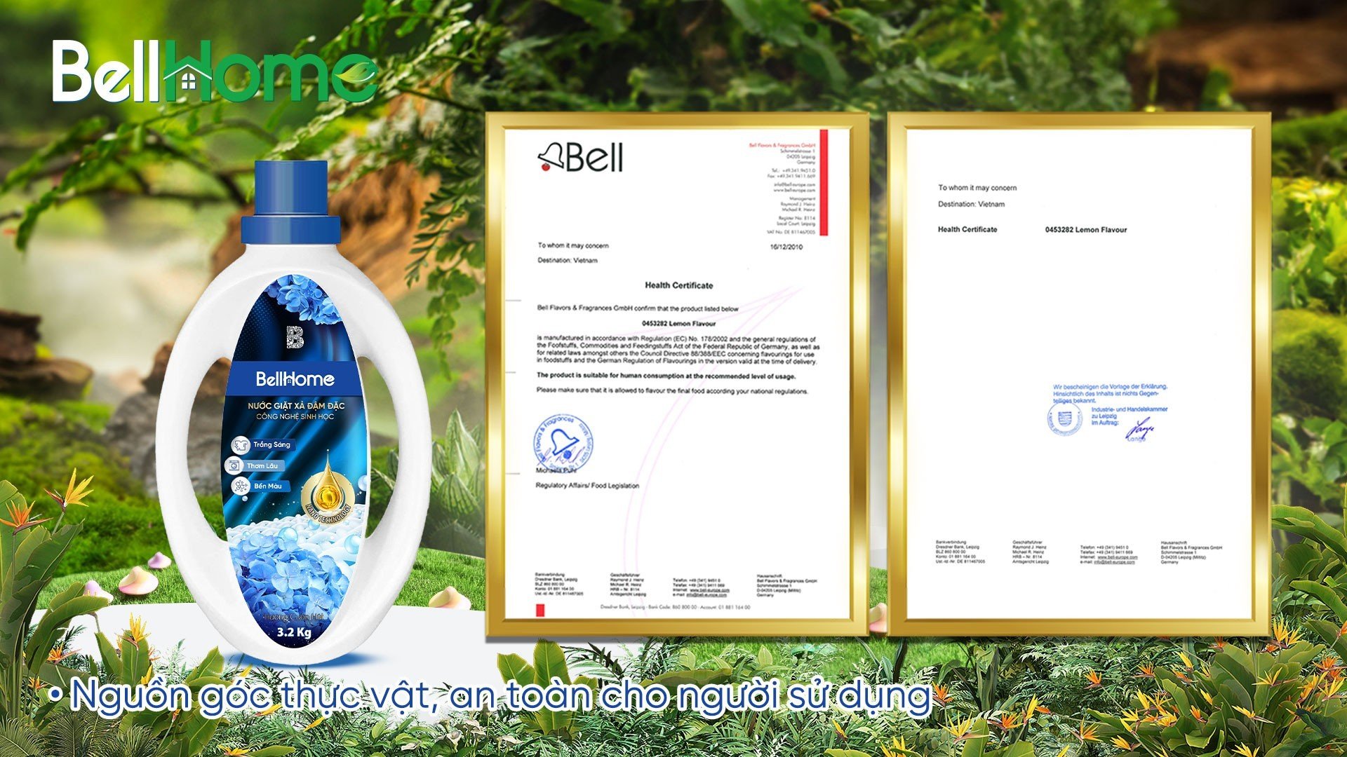 Lưu Hương Tinh Tế, Tự Nhiên Bell Home sử dụng công nghệ lưu hương đa tầng tiên tiến, kế thừa từ Bell Flavors & Fragrances, một trong những công ty hàng đầu thế giới về hương liệu. Mỗi lớp hương hoa trong sản phẩm là sự kết hợp độc đáo từ 20-30 loại hoa và trái cây tự nhiên, mang đến mùi hương quyến rũ, dễ chịu. Nhờ vào khả năng lưu hương lâu dài, quần áo sẽ luôn thơm mát suốt nhiều giờ sau khi giặt, không bị mùi khó chịu dù ngâm lâu trong nước.