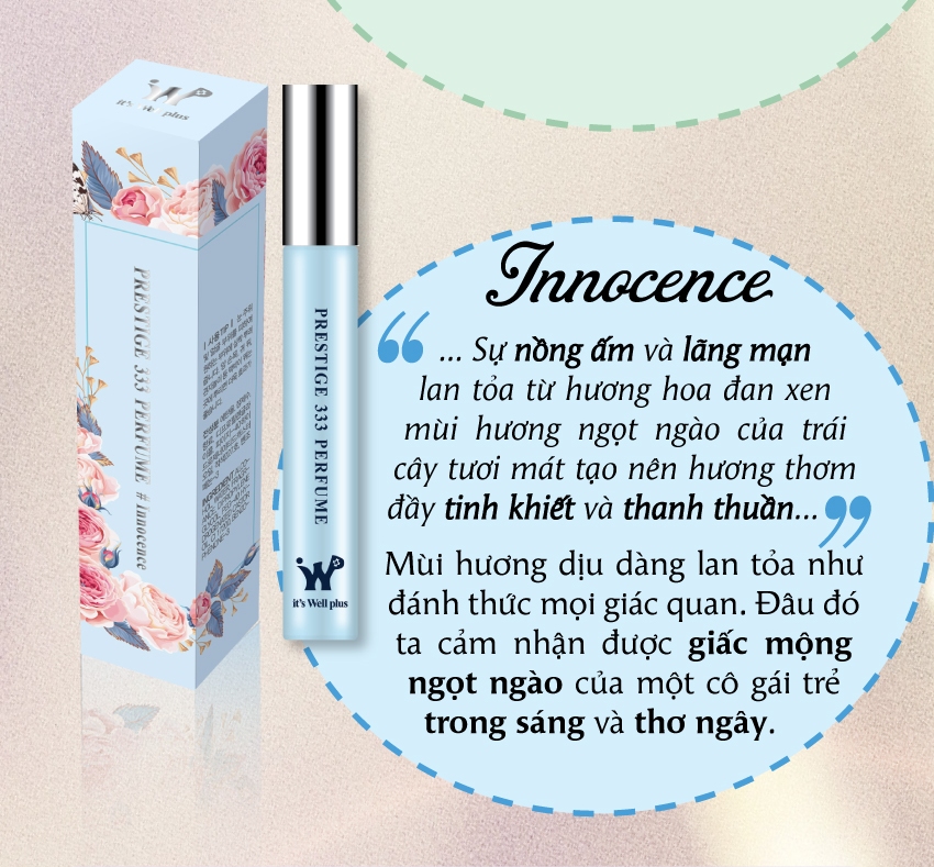 - Nước Hoa It's Well Plus Prestige 333 Perfume Innocence PP-I (9ml) - Sự nồng ấm và lãng mạng lan tỏa từ hương hoa đan xen mùi hương ngọt ngào của trái cây tươi mát