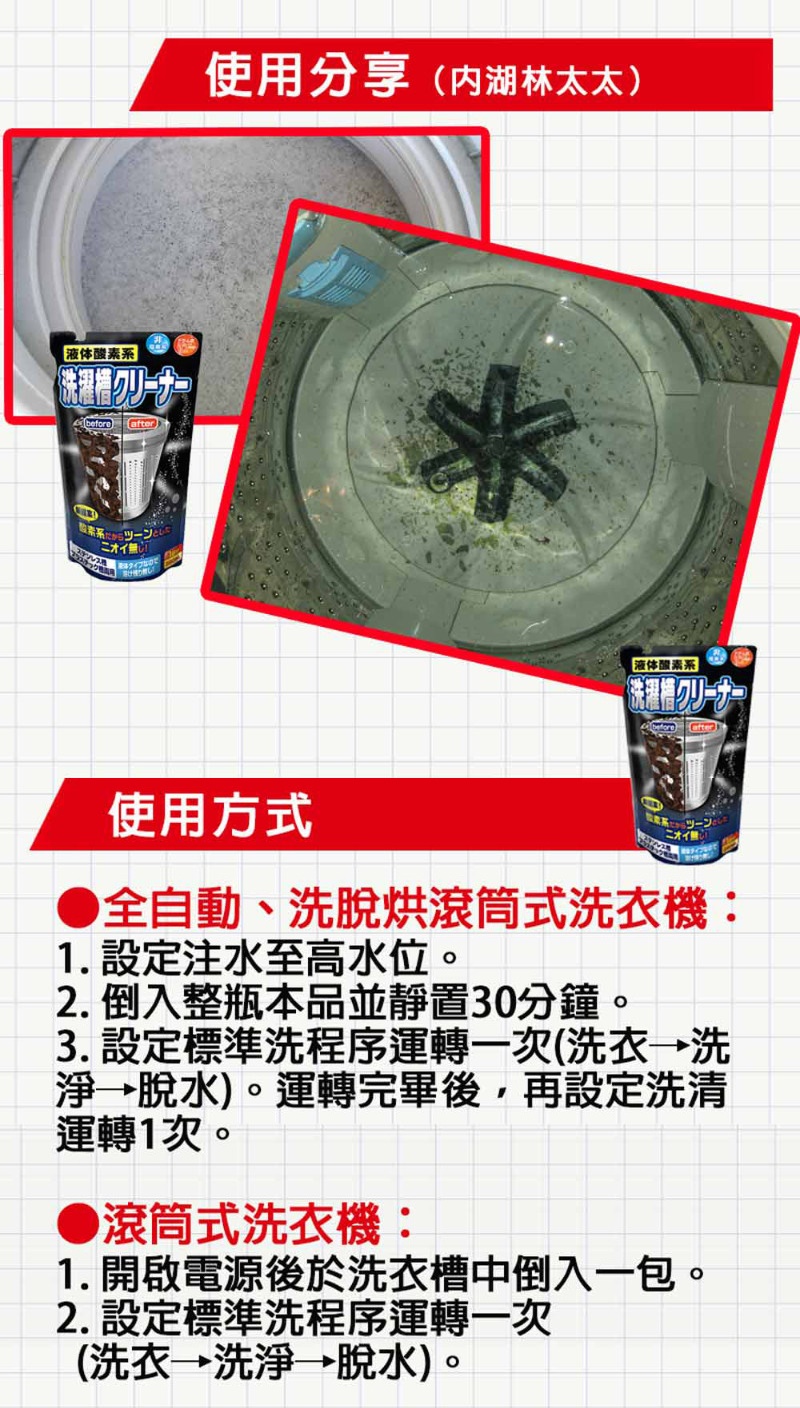Chai nước tẩy lồng máy giặt 400ml nội địa Nhật Bản - Dùng được cho lồng máy inox, nhựa, cho máy giặt cửa trên và cửa trước, máy giặt lồng nghiêng. Nên sử dụng để