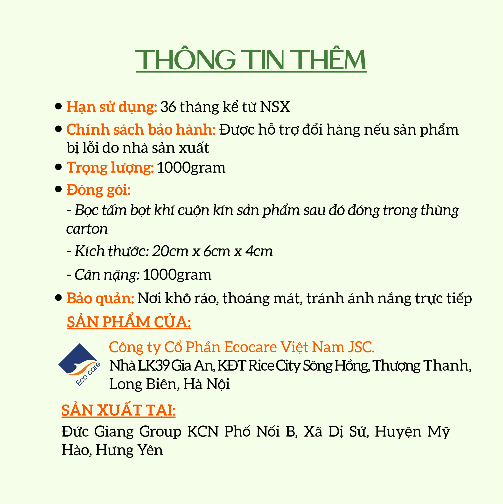 ** THÔNG ĐIỆP TỪ NHÀ SẢN XUẤT ECOCARE: - Trước tiên, Ecocare xin cảm ơn Quý Khách hàng đã tin tưởng lựa chọn sản phẩm Nước tẩy rửa bồn cầu Hữu cơ Ecocare 1000ml -