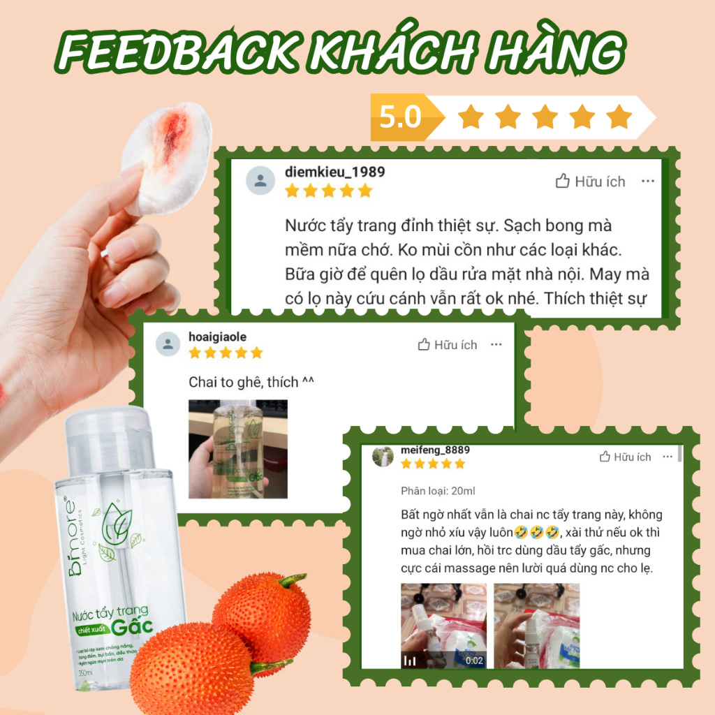 Ưu điểm chỉ có ở tẩy trang gấc Bimore: