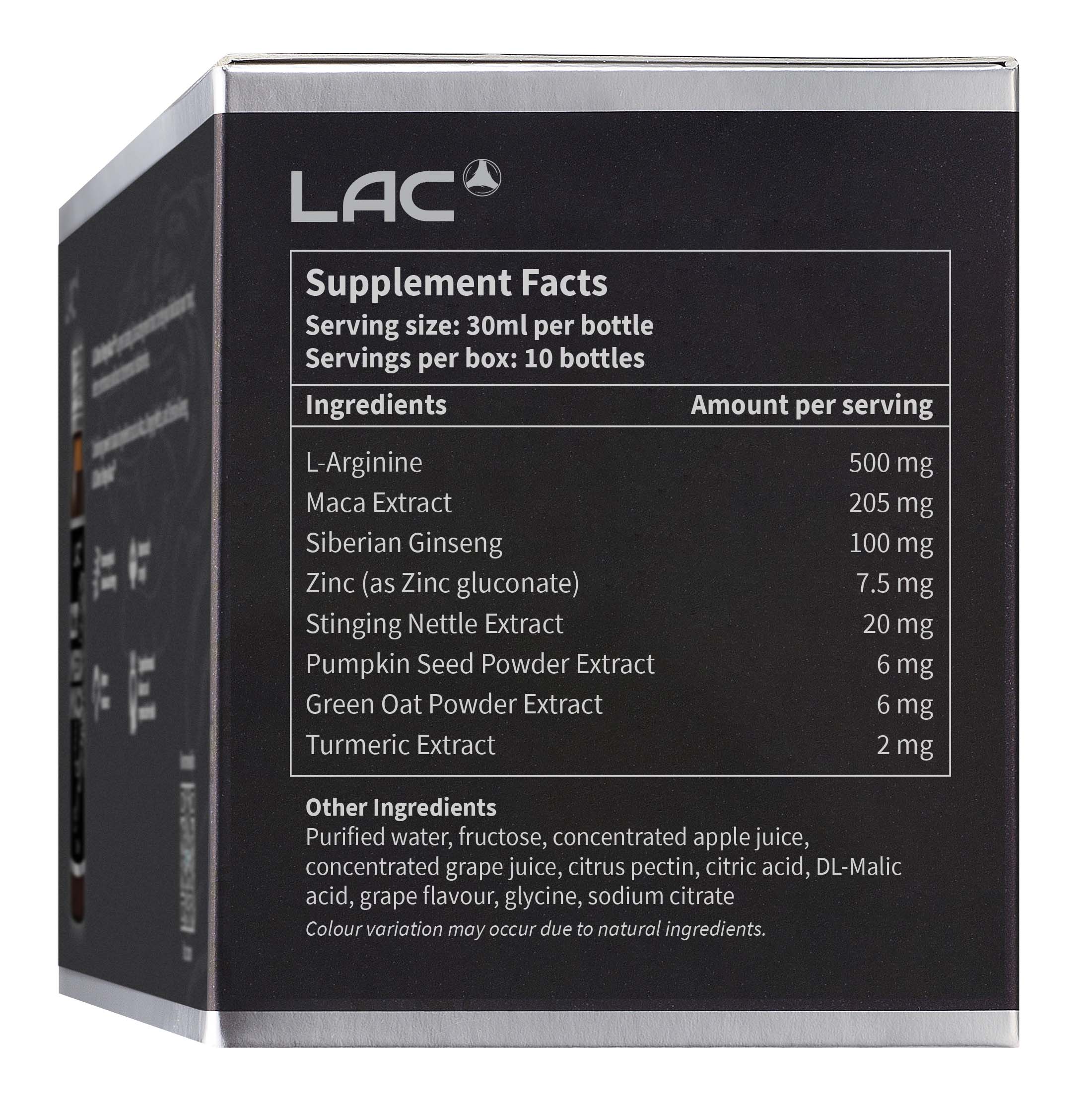 NƯỚC UỐNG TĂNG CƯỜNG SỨC KHỎE, SINH LỰC VÀ THỂ TRẠNG DÀNH CHO NAM GIỚI LAC MEN'S MEGA MACA (30ML X 10 CHAI) là sản phẩm bổ trợ sức khỏe dành cho nam giới -