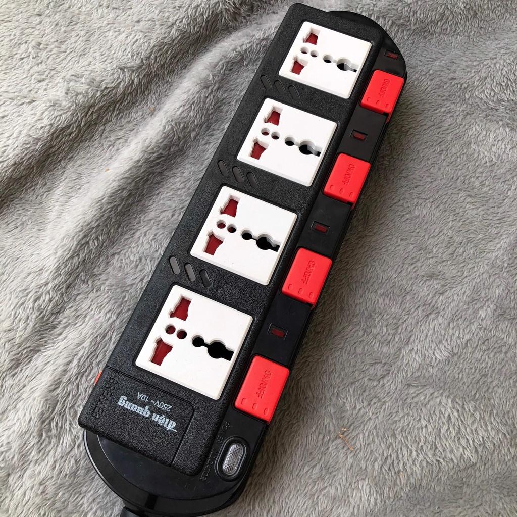 Ổ cắm điện đa năng điện quang 4 ổ 3 chấu 4 công tắc riêng công suất 2000w dây dài 2 mét hoặc 5 mét