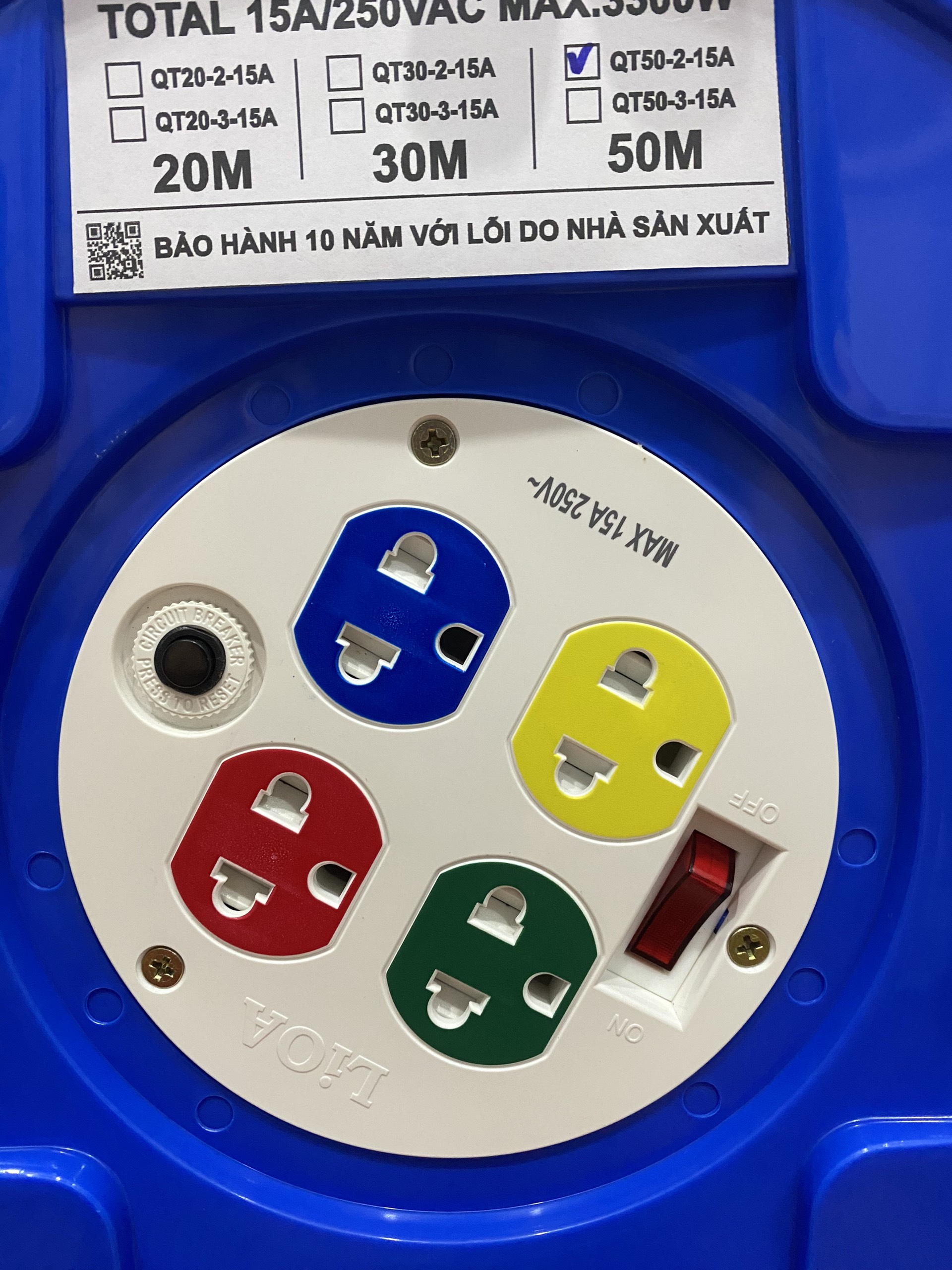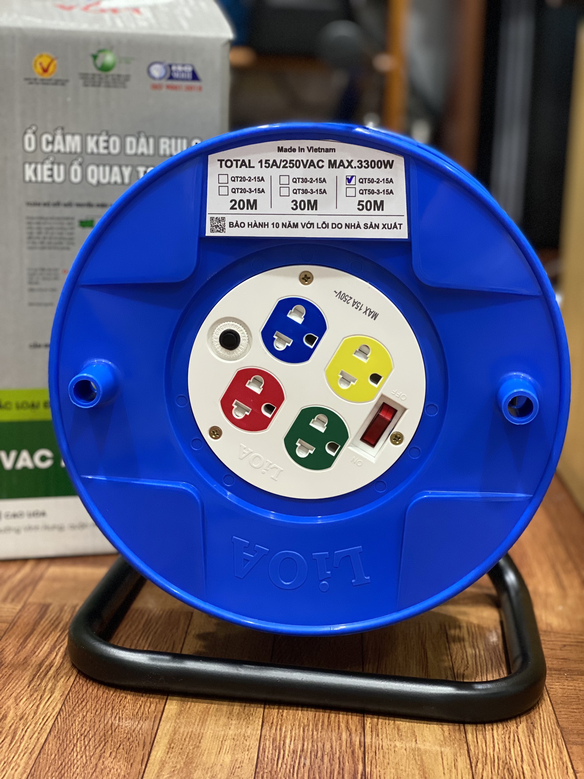 Mua tại TiktokMã sản phẩm : QT50-2-15 A Thương hiệu : Lioa NHẬT LINH Xuất xứ : Việt Nam Mô tả : Có bảo vệ quá tải bằng CB, ổ đa năng có nắp che an toàn. Là loại ổ cắm phổ thông Chất lượng : Mới 100% chưa qua sử dụng Bảo hành : 12 tháng chính hãng Ổ cắm rulo lioa 50 mét được sản xuất theo tiêu chuẩn Châu Âu, Mỹ, Anh, bền chắc đảm bảo độ an toàn cao cho người sử dụng. Nhíp tiếp xúc được chế tạo từ vật liệu đồng đàn hồi nhập khẩu đảm bảo không lỏng lẻo nên tiếp xúc tốt, không đánh lửa, an toàn và có độ bền cao. Vỏ ổ cắm bằng nhựa bền chắc, cách điện an toàn. Dây dẫn dài, bọc nhựa dày, mềm dẻo linh hoạt, cách điện tốt, an toàn khi sử dụng .