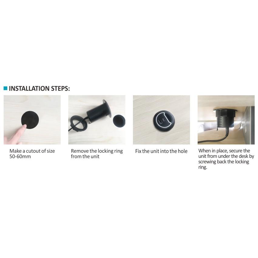 • Lắp đặt tại bàn làm việc để sạc điện thoại và tablet tiện lợi.