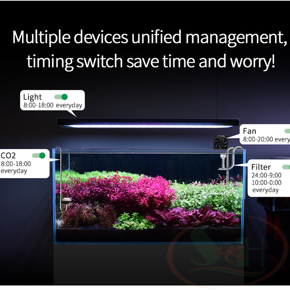 Ổ cắm Week Aqua Smart Plug giúp hẹn giờ tắt / mở một cách tự động các thiết bị điện tử như quạt, đèn, bộ tưới cây, bộ sạc điện thoại, van điện co2... Thiết