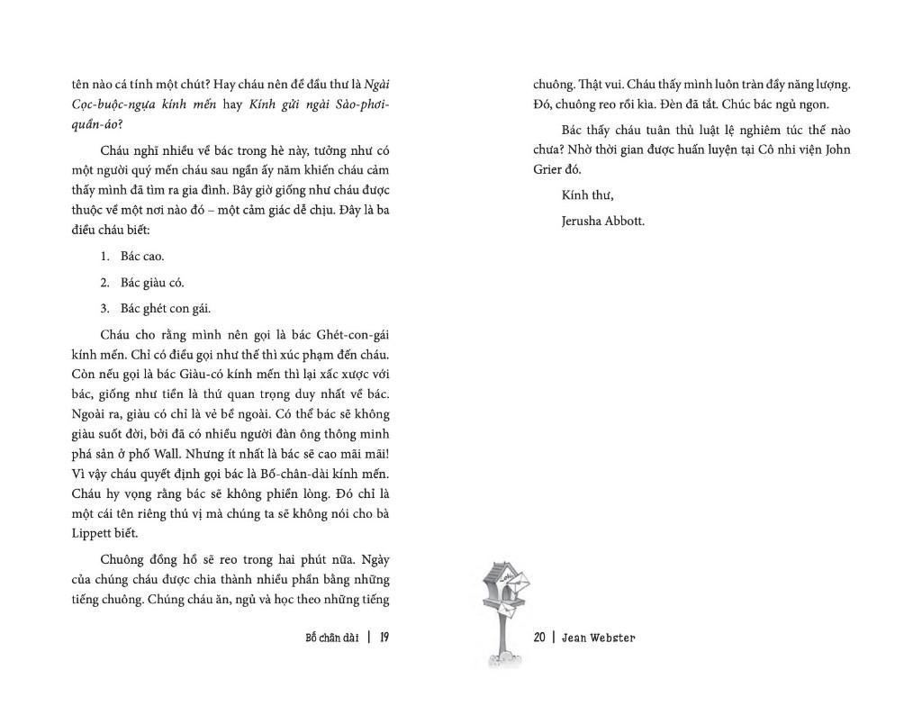 Jean Webster là bút danh của Alice Jane Chandler Webster - nữ nhà văn người Mỹ nổi tiếng với các tiểu thuyết như: Ông bố chân dài (Daddy-Long-Legs), Kẻ thù thân yêu (Dear Enemy)