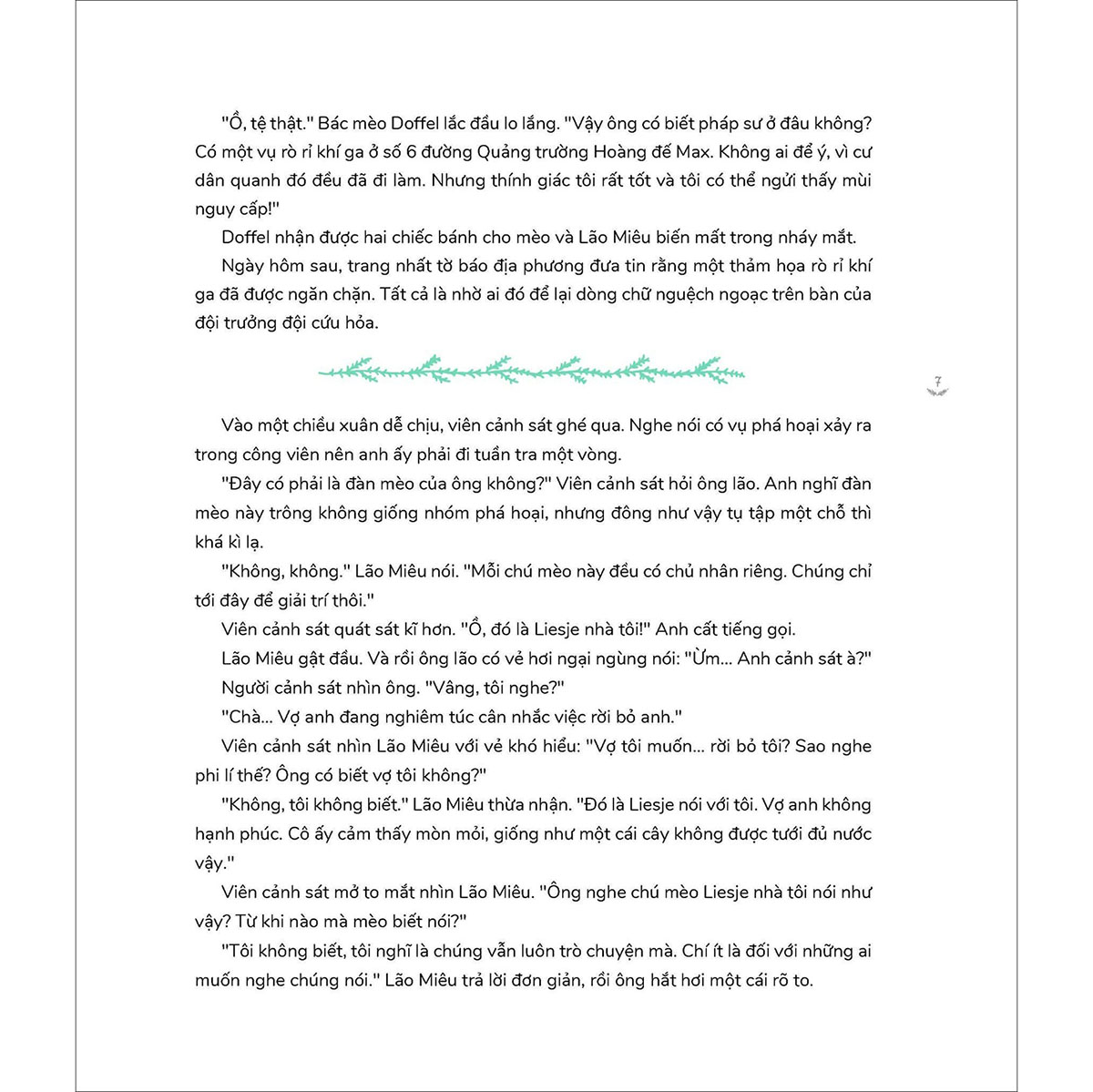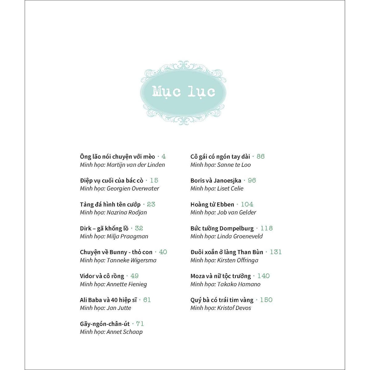 Ông lão nói chuyện với mèo gồm mười lăm câu chuyện cổ tích hiện đại đầy bất ngờ và hóm hỉnh của tác giả Janneke Schotveld, được thể hiện qua nét vẽ tuyệt đẹp của các họa sĩ minh họa Martijn van der Linden, Georgien Overwater, Nazrina Rodjan, Milja Praagman, Tanneke Wigersma, Annette Fienieg, Jan Jutte, Annet Schaap, Sanne te Loo, Liset Celie, Job van Gelder, Linda Groeneveld, Kirsten Offringa, Tanako Hamano và Kristof Devos.