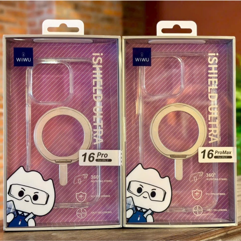 Ốp lưng cho iPhone 16 Pro Max - 16 Pro - 16 Plus WI WU MCC-201 nhựa cứng trong viền dẻo + vòng nam châm kiêm giá đỡ xếp gọn : viền nhựa dẻo TPU được thiết kế độc đáo và sang trọng với phần lưng chất liệu Polycarbonate (PC) cao cấp, cứng cáp và trong suốt hạn chế bị ngả màu khi sử dụng. Phần viền là chất liệu silicon dày dặn, chắc chắn, ôm toàn bộ phần thân máy, bảo vệ tối ưu cho chiếc iP của bạn khỏi trày xước, chịu va đập tốt. Ốp lưng trong suốt giúp bạn giữ nguyên được màu máy, thiết kế nút bấm, loa, chân sạc chính xác tỉ mỉ dễ dàng sử dụng.