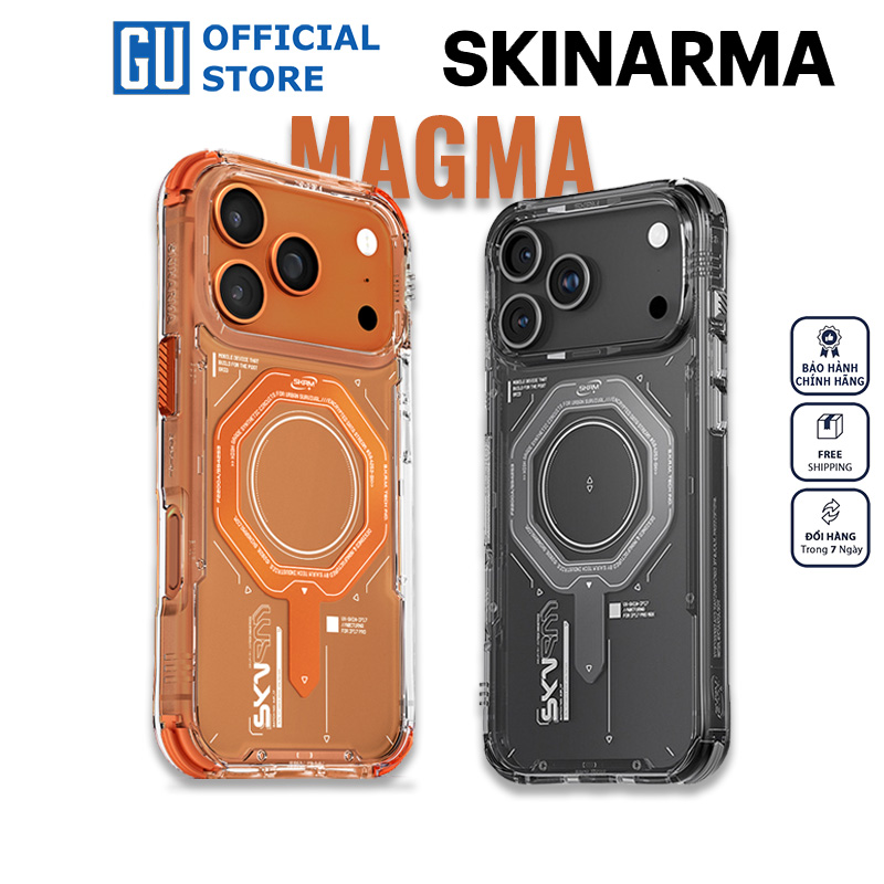 Mua tại TiktokỐp Lưng Cho iPhone 17 Pro/ 17 Pro Max SKINARMA MAGMA Mag-Charge Vỏ Bóng Bẩy Nút Bằng Nhôm Bảo Vệ Toàn Diện Viền máy công nghệ cao với khả năng bảo vệ toàn diện. MAGMA kết hợp vỏ máy bán trong suốt bóng bẩy với vòng Mag-Charge kim loại và các nút bấm bên hông bằng nhôm tạo nên vẻ ngoài lấy cảm hứng từ máy. Đi kèm với các vòng dây đeo góc có thể thay đổi để tùy chỉnh cách mang theo. ĐẶC ĐIỂM NỔI BẬT: • Tương thích với sạc từ tính (Ma Safe) • Hỗ trợ sạc không dây nhanh chóng, tiện lợi khi sử dụng hằng ngày mà không cần tháo ốp. • Bảo vệ toàn diện 360º • Thiết kế bao phủ toàn bộ viền và mặt sau thiết bị, chống va đập, trầy xước và mài mòn hiệu quả. • Chống trầy xước tiêu chuẩn 2H • Bề mặt được xử lý chống xước nhẹ, duy trì vẻ ngoài sạch đẹp lâu dài. • Tích hợp túi khí bảo vệ (Air Pockets) • Các góc được tăng cường đệm khí giúp hấp thụ lực va chạm tốt hơn khi rơi rớt. • Nút nguồn & nút chức năng bằng hợp kim nhôm (Aluminium Buttons) • Cảm giác bấm chắc tay, phản hồi tốt, đồng thời tăng độ bền và độ hoàn thiện cao cấp. • Đi kèm móc dây đeo thay thế (Interchangeable Lanyard Loops) • Cho phép gắn dây đeo cổ hoặc đeo tay, dễ dàng tùy chỉnh theo phong cách cá nhân. THÔNG TIN SẢN PHẨM: • Bảo vệ chống rơi từ độ cao 8 feet • Bảo vệ ống kính máy ảnh được nâng lên • Túi khí bảo vệ hấp thụ sốc • Mô-đun vòng nam châm để sạc từ tính • Nút nguồn và nút hành động bằng nhôm • Bao gồm vòng dây buộc ở góc cản có thể thay đổi • Chất liệu: - TPU (Thermoplastic Polyurethane – Nhựa dẻo nhiệt) + PC (Polycarbonate – Nhựa cứng cao cấp) Hộp bao gồm: Ốp Lưng Cho iPhone 17 Pro/ 17 Pro Max SKINARMA MAGMA HÀNG CHÍNH HÃNG bảo hành áp dụng quy định sau: Chất liệu TPU/PC(ngoại trừ ốp trong), PP (polypropylene): 90 ngày; Chất liệu Da, silicon, Thép, hoặc kim loại khác: 90 ngày. (không bảo hành bong tróc do bị oxy hoá, bong tróc da trong quá trình sử dụng). ️ Điều kiện bảo hành: Sản phẩm còn nguyên vẹn, giữ lại đầy đủ hộp của sản phẩm, phụ kiện kèm theo. Vui lòng QUAY VIDEO khui gói hàng trước khi mở gói hàng để đảm bảo PHỤ KIỆN GU OFFICIAL STORE giao đúng và đủ đơn hàng.