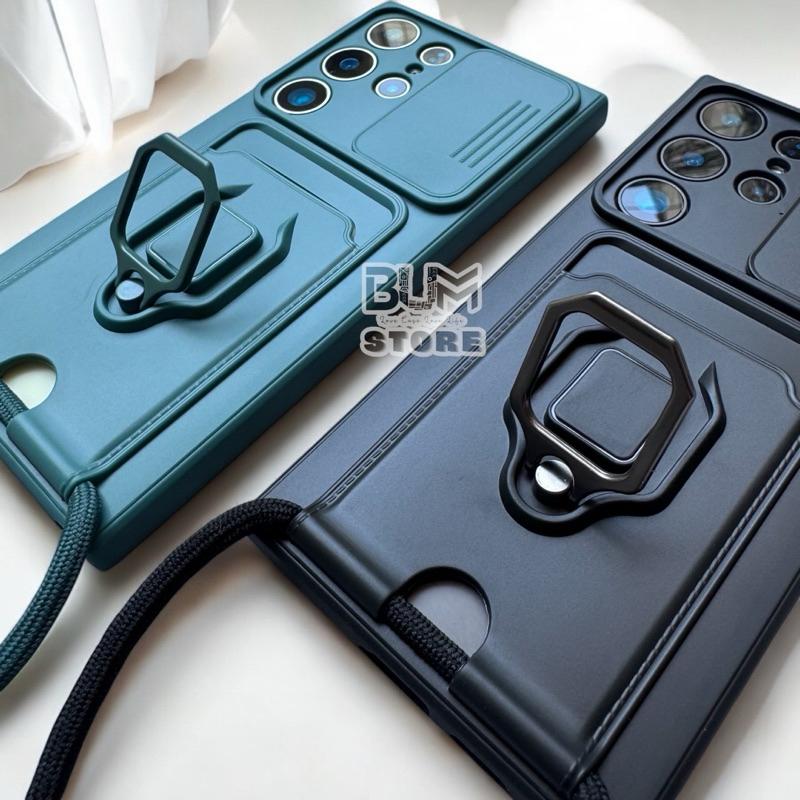 ✨Ốp Lưng Cho Samsung Galaxy S25 Ultra / S24 Ultra / S23 Ultra / S22 Ultra 4 In 1 Có Ngăn Để Thẻ , Kèm Dây Đeo Dài