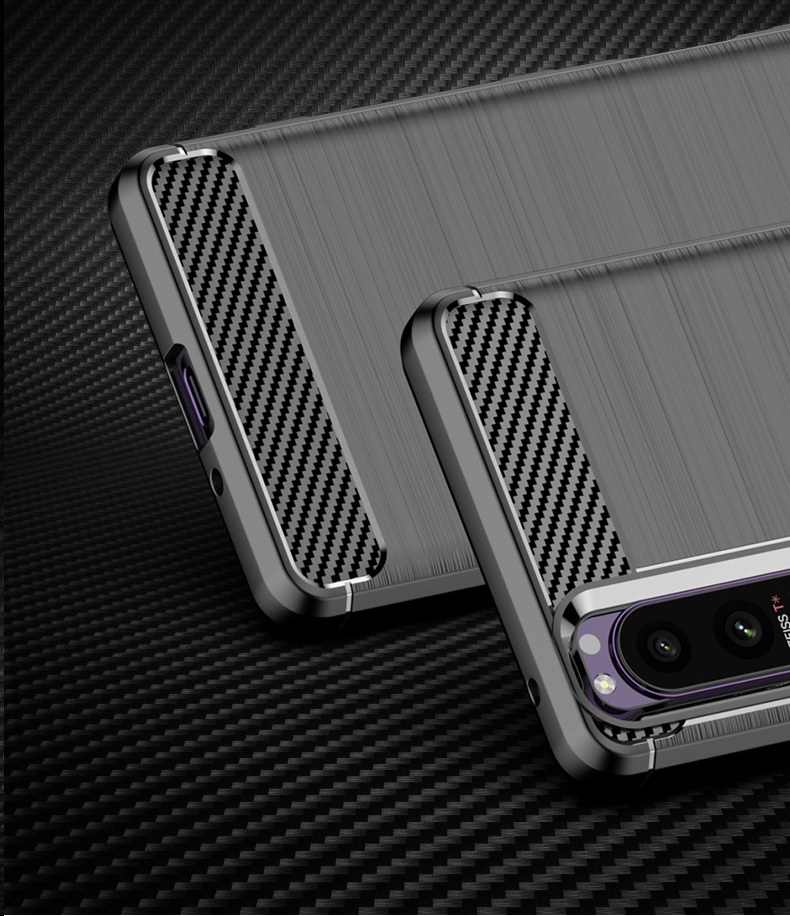 Ốp lưng chống sốc Sony Xperia 5 Vân Sợi Carbon được thiết kế với 2 dải carbon trên dưới tuyệt đẹp, độc đáo, sang trọng Ốp lưng được làm từ chất liệu nhựa mềm TPU