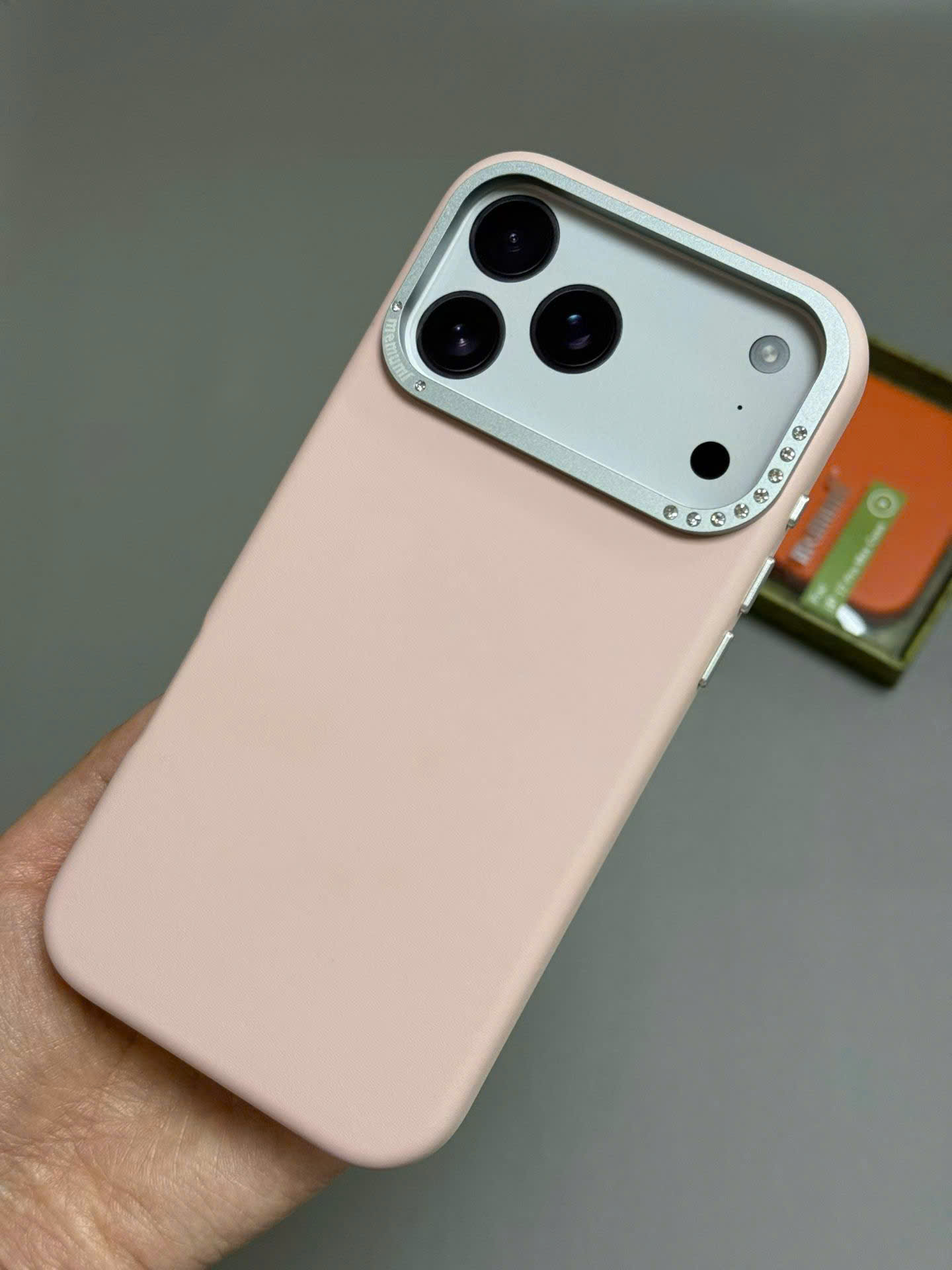 Ốp lưng da PU viền cam đá cho iPhone 17 Pro Max hiệu Memumi Diamond With Mag safe • Chất liệu da PU cao cấp, mềm mại và sang trọng khi cầm nắm. • Vòng