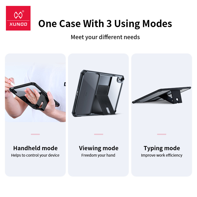 Bao da máy tính bảng bảo vệ XUNDD cho iPad Mini 6Giá đỡ được cải tiến có thể giúp thiết bị của bạn đứng vững trên bề mặt và mang lại nhiều tiện lợi.Chức năng 1: Chế độ cầm tayNó có thể giúp bạn kiể...