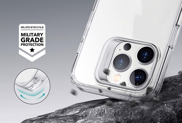 Thiết kế với hệ thống bảo vệ 3 lớp chắc chắn, hấp thụ lực tác động ở từng tầng: - Viền chống sốc 360º - Bảo vệ góc được gia cố - Cấu trúc hấp