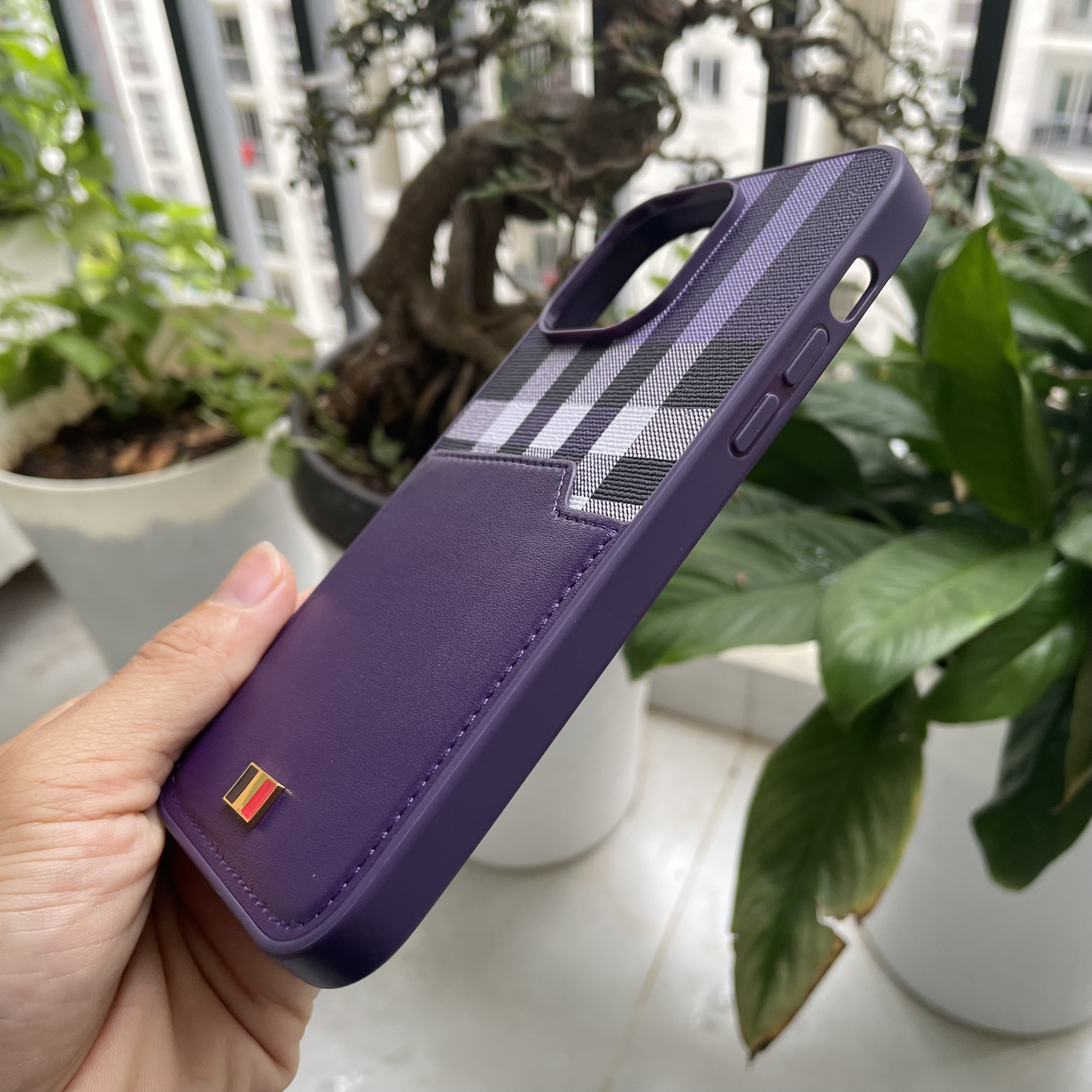 Ốp lưng iPhone 14 pro max Mentor VII được làm từ chất liệu da simili vân sọc caro nhiều màu.