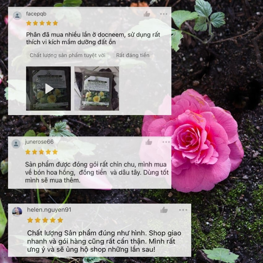 PHÂN BÓN HỮU CƠ DOCNEEM SIÊU KÍCH RỄ - sự kết hợp 3 trong 1, chuyên cho hoa hồng, hoa lan, cây cảnh Thương hiệu Docneem - Bảo hộ tại Cục sở hữu trí tuệ
