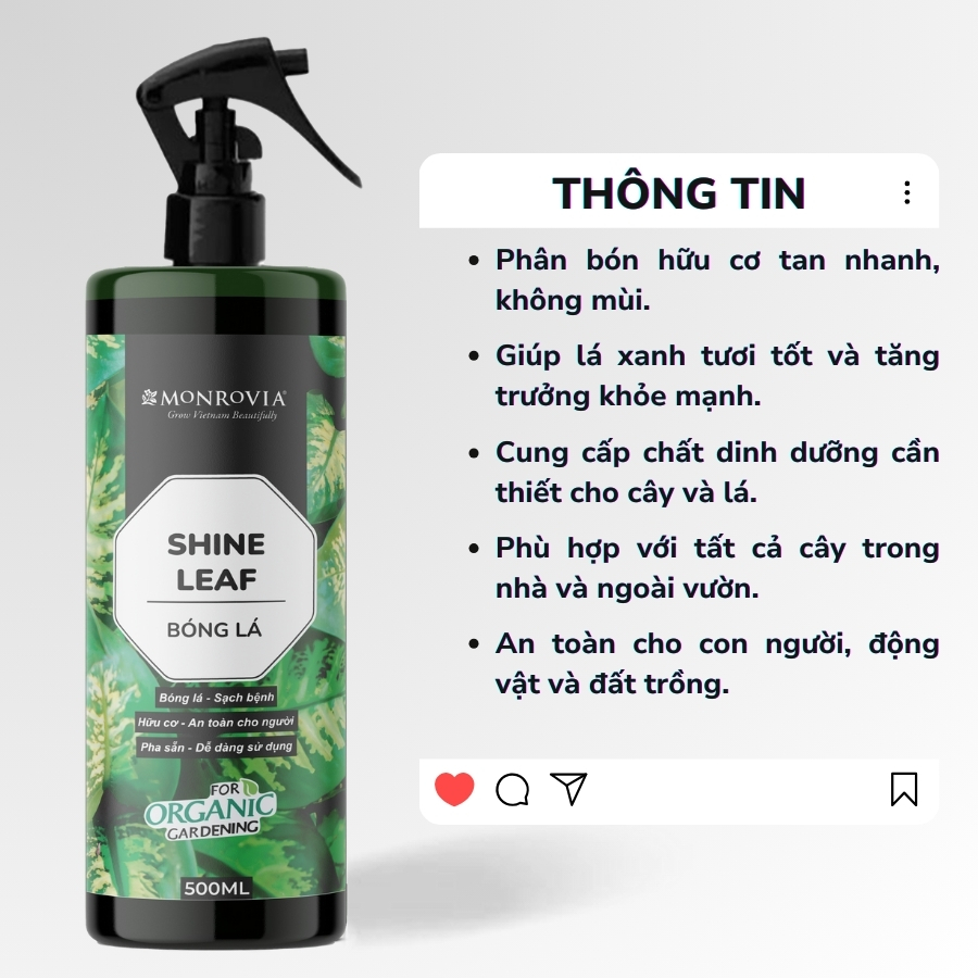 ✨Phân bón trong nhà BÓNG LÁ MONROVIA hữu cơ giúp lá xanh mướt, bóng cho cây cảnh dung tích 500ml