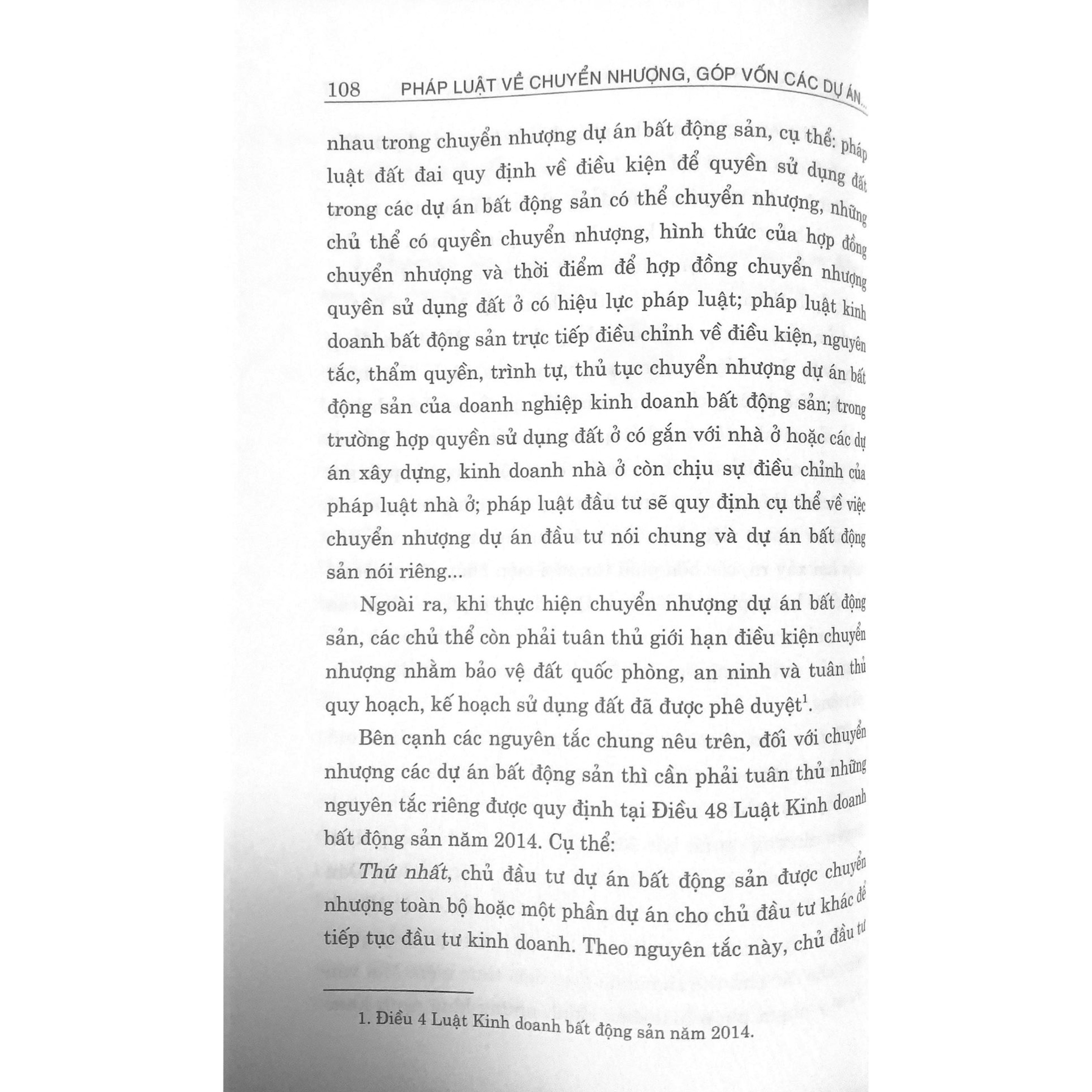 Trên cơ sở nghiên cứu và so sánh, phân tích, đánh giá thực trạng pháp luật, thực tiễn thực thi pháp luật, cuốn sách Pháp luật về chuyển nhượng, góp vốn các dự án bất động sản của doanh nghiệp kinh doanh bất động sản (Sách chuyên khảo) của Nhà xuất bản Chính trị quốc gia Sự thật, do PGS. TS. Nguyễn Thị Nga - Khoa Pháp luật kinh tế, Trường Đại học Luật Hà Nội làm chủ biên, tập trung làm rõ những vấn đề lý luận về chuyển nhượng, góp vốn các dự án kinh doanh bất động sản dưới góc nhìn đa chiều; phân tích, đánh giá thực tiễn thực thi pháp luật về các hoạt động này, qua đó đề xuất những giải pháp hoàn thiện pháp luật, nâng cao hiệu quả áp dụng pháp luật về hoạt động chuyển nhượng, góp vốn dự án bất động sản, hướng tới sự phát triển ổn định và bền vững của thị trường này tại Việt Nam.