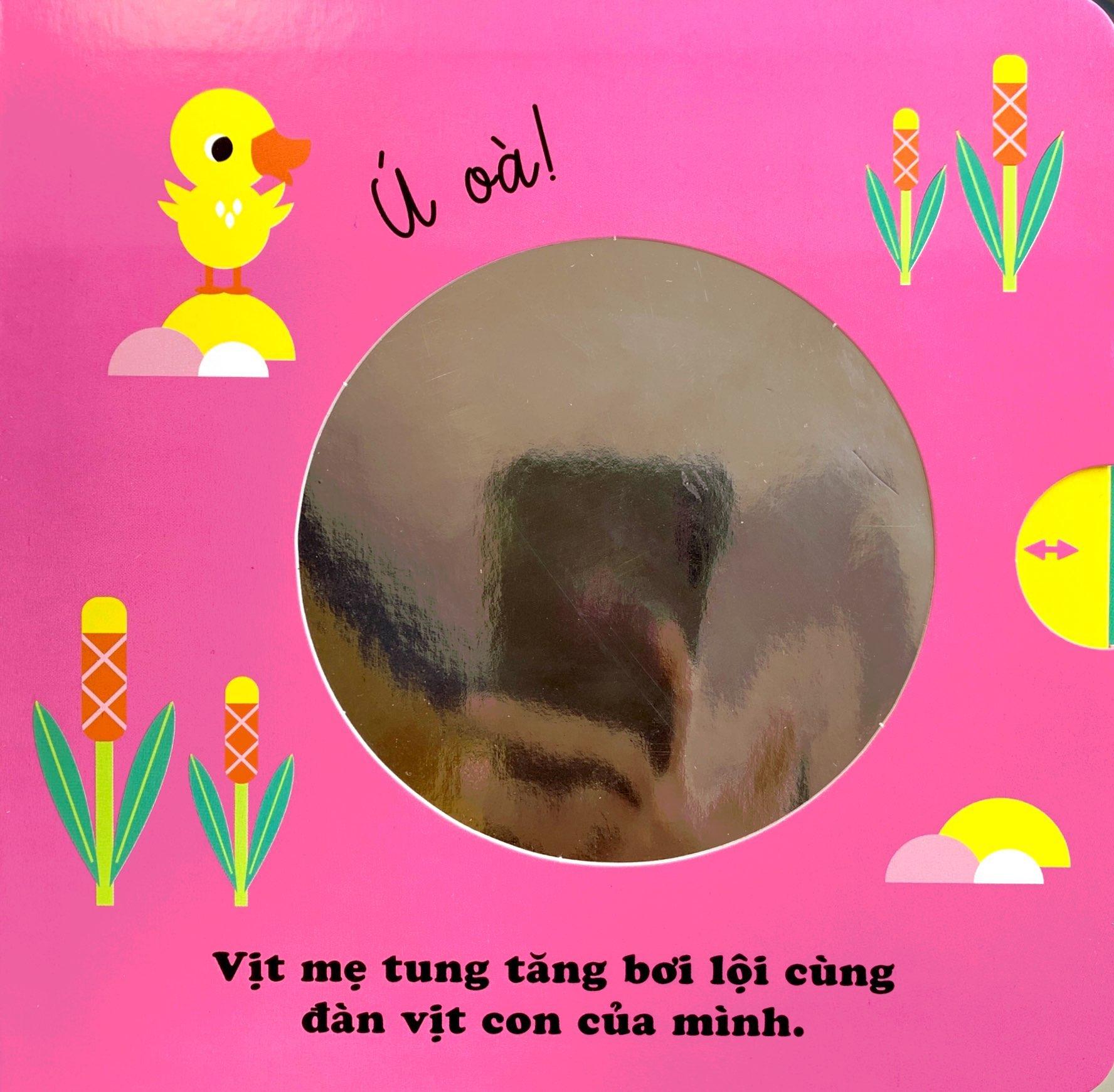 Những chuyển động vui nhộn và đơn giản trên từng trang sách, kèm theo một chiếc gương bóng loáng hứa hẹn sẽ mang đến những giây phút vui vẻ cho bé cũng như giúp các bé phát triển khả năng vận động tay chân và phối hợp các giác quan.