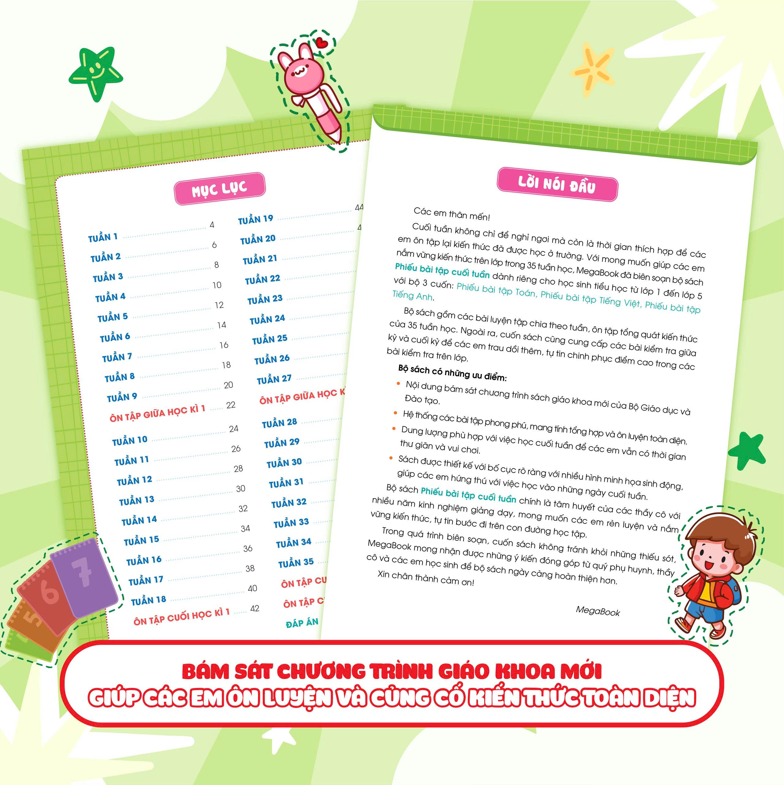 Combo Phiếu Bài Tập Cuối Tuần Toán + Tiếng Việt + Tiếng Anh Lớp 1 (35 Tuần Học) (Bộ 3 Cuốn) 1. Phiếu Bài Tập Cuối Tuần Toán 1 (35 Tuần Học) 2. Phiếu Bài