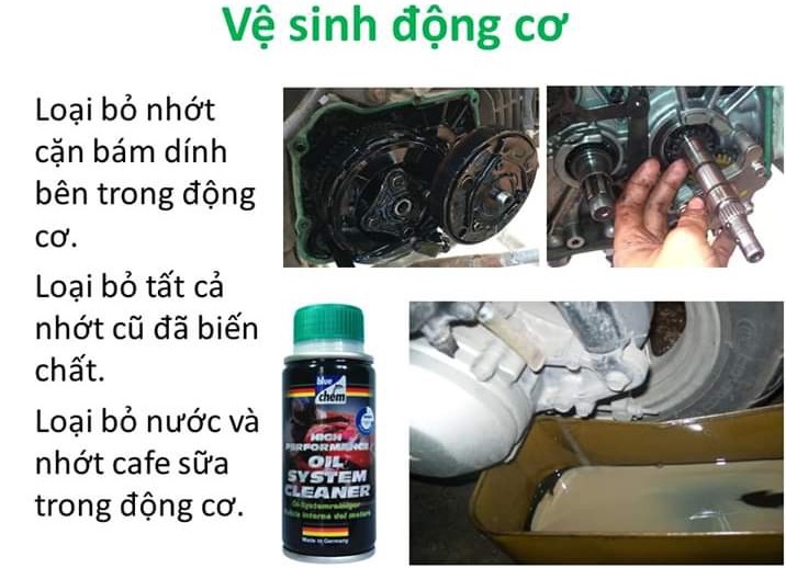 - Công dụng: Làm sạch hệ thống động cơ, nhớt cũ, cặn bã lâu ngày trong động cơ