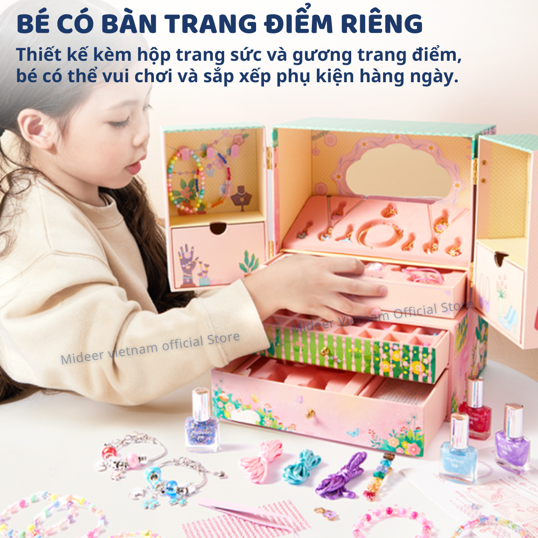 Mua tại TiktokCHÀO MỪNG BẠN ĐẾN VỚI MIDEERVIETNAM HÀNG SẴN SHIP HỎA TỐC, BẢO HÀNH CHÍNH HÃNG ————————————— Phụ kiện cho bé gái vòng tay, vòng charm, sơn móng tay Mideer Girls Power Lacing Beads Mideer Girls Power Lacing Beads – bộ phụ kiện sáng tạo giúp bé gái trở thành nàng công chúa rực rỡ nhất! Với đa dạng nguyên liệu làm vòng tay, vòng charm, sơn móng tay an toàn, cùng thiết kế hộp trang điểm xinh xắn, sản phẩm giúp bé rèn luyện sự khéo léo và khả năng sáng tạo tuyệt vời. 11 Lý doba mẹ nên chọn Phụ kiện cho bé gái vòng tay, vòng charm, sơn móng tay Mideer