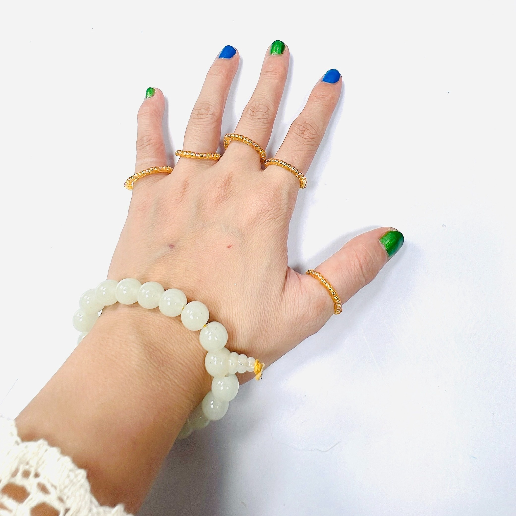 NHẪN HANDMADE MÀU VÀNG MÃ 08 DẠNG TRÒN TRONG SUỐT LẤP LÁNH Thiết kế : Viên ngọc trai dạng tròn màu vàng trong suốt, sáng lấp lánh Kích cỡ ngón tay đeo nhẫn : 5-7CM