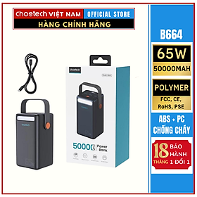 Pin sạc dự phòng Choetech B664 dung lượng siêu khủng 50000mAh công suất 65W (Hàng chính hãng)