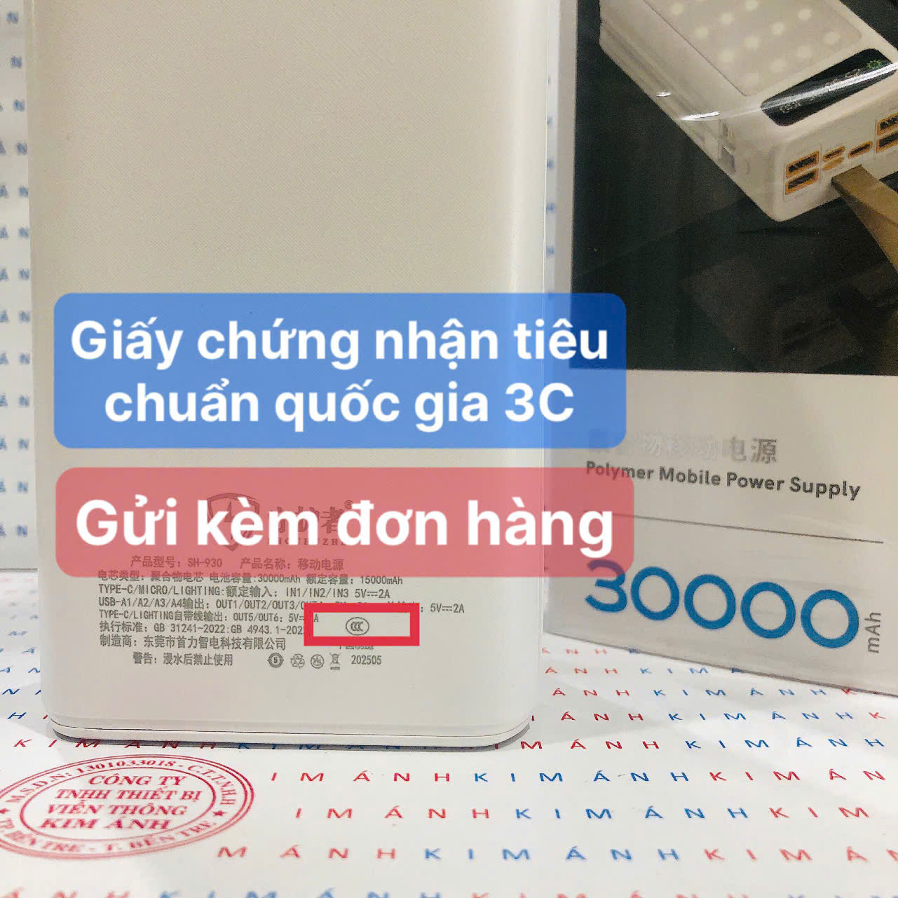 Pin sạc dự phòng SH-930 dung lượng lớn 30.000mAh, hàng chính hãng có giấy chứng nhận tiêu chuẩn quốc gia 3C