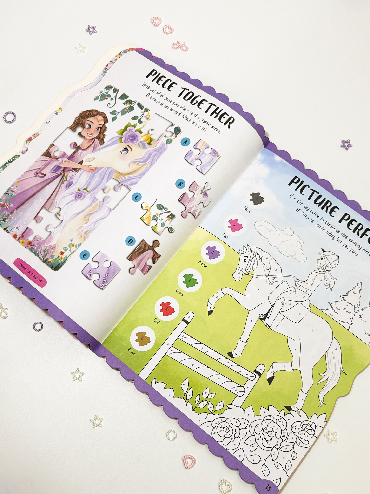 Princesses everywhere will love the engaging activities in this pretty handbag-shaped book