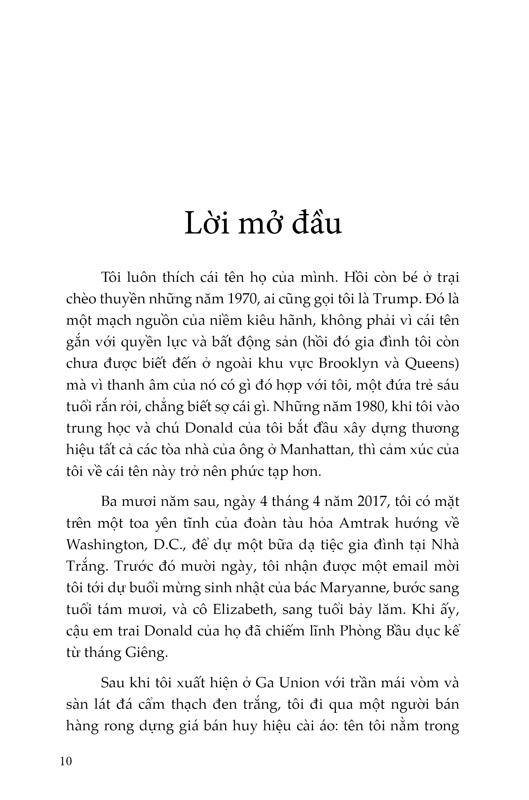 Đã có nhiều chuyên gia tâm lý, học giả và phóng viên tìm cách phân tích những thiếu xót chí mạng của Donald J. Trump. Nhưng Mary L. Trump lại có được nền tảng giáo dục, góc nhìn sâu sắc và sự thân thiết cần thiết để hé lộ những điều tạo nên con người của Tổng thống thứ 45 Hoa Kỳ - Donald Trump, cũng như các thành viên khác trong gia đình bà. Chỉ riêng bà là có thể kể lại câu chuyện hấp dẫn này, không chỉ bởi bà có cái nhìn của người trong cuộc, mà còn bởi bà là thành viên duy nhất trong nhà Trump sẵn lòng kể cho mọi người biết sự thật về một trong những gia đình quyền lực nhất thế giới nhưng cũng không kém phần rối loạn.