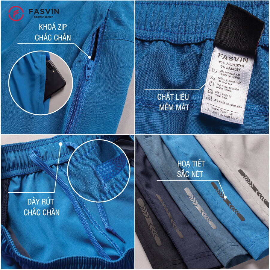 => Quần đùi nam ngắn chạy bộ FASVIN vải Dù Gió nhẹ mát có khóa túi tiện dụng thể thao hay mặc nhà được sản xuất trong nhà máy của FASVIN tại Việt Nam. Với
