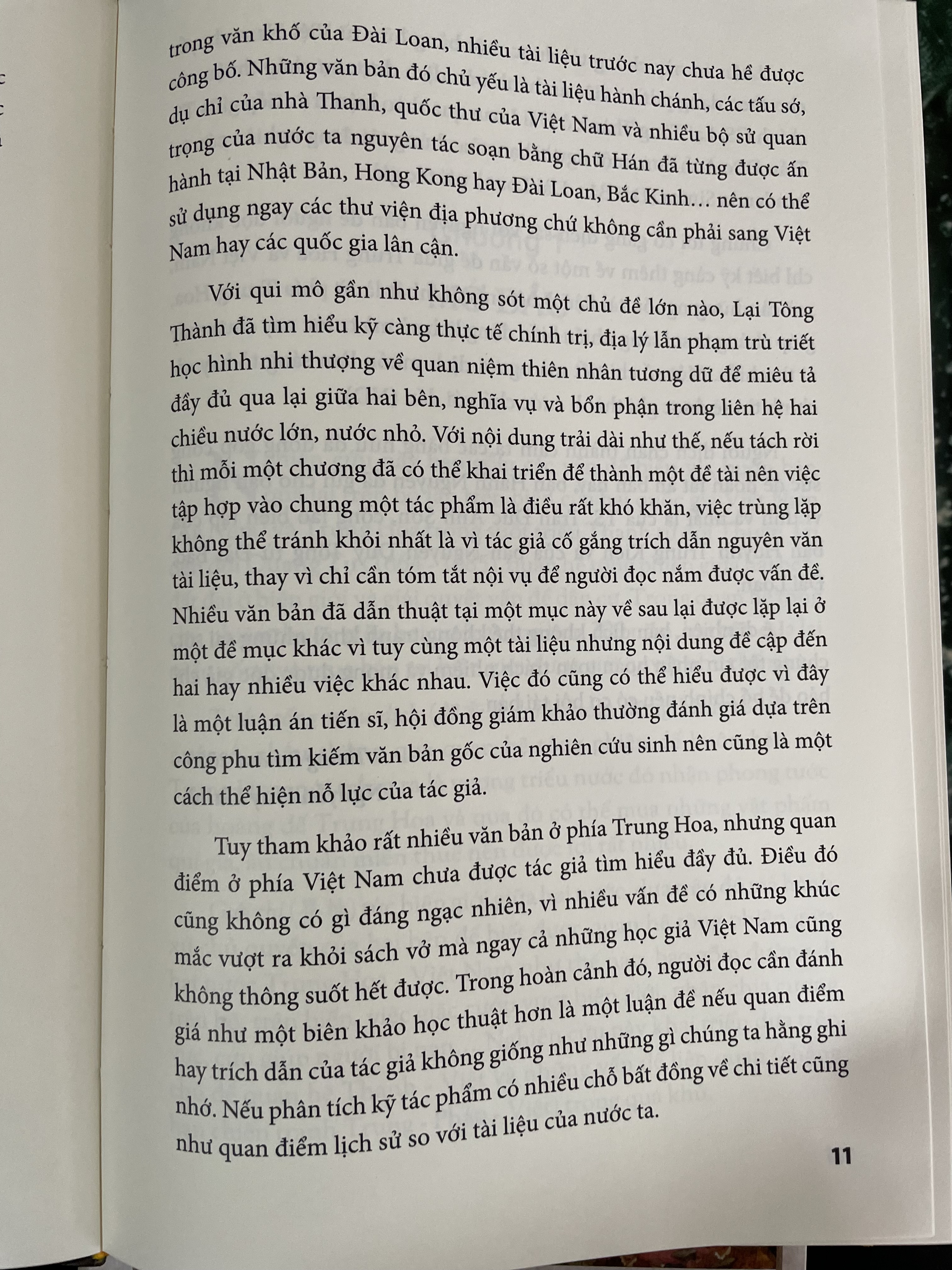 Sự lên xuống của các triều đại ít nhiều ảnh hưởng đến quan hệ giữa nước ta và Trung Hoa, nhưng trong hệ thống trật tự thiên hạ của phương Đông, những tương tác vẫn tiếp tục được thể hiện như định lệ hàng ngàn năm không có gì thay đổi. Hầu như cả Trung Hoa lẫn Việt Nam đều không bên nào muốn đề cập khó khăn riêng của mình mà vẫn giả vờ coi như chỉ là vấn nạn nhất thời không đáng lý đến. Tác phẩm (1644-1885) [Thanh Việt quan hệ nghiên cứu - dĩ mậu dịch dữ biên vụ vi thám thảo trung tâm (1644 - 1885)] của Lại Tông Thành là một công trình qui mô nghiên cứu cụ thể trong liên hệ tông phiên, một mặt trên thực tế lịch sử môi răng của hai nước liền kề, mặt khác những va chạm không thể tránh khỏi trong quyền lợi thương mại, đất đai vùng biên giới. Tác giả cũng nghiên cứu rất kỹ về những tương trợ trên biển hay đất liền khi có thiên tai, loạn lạc.