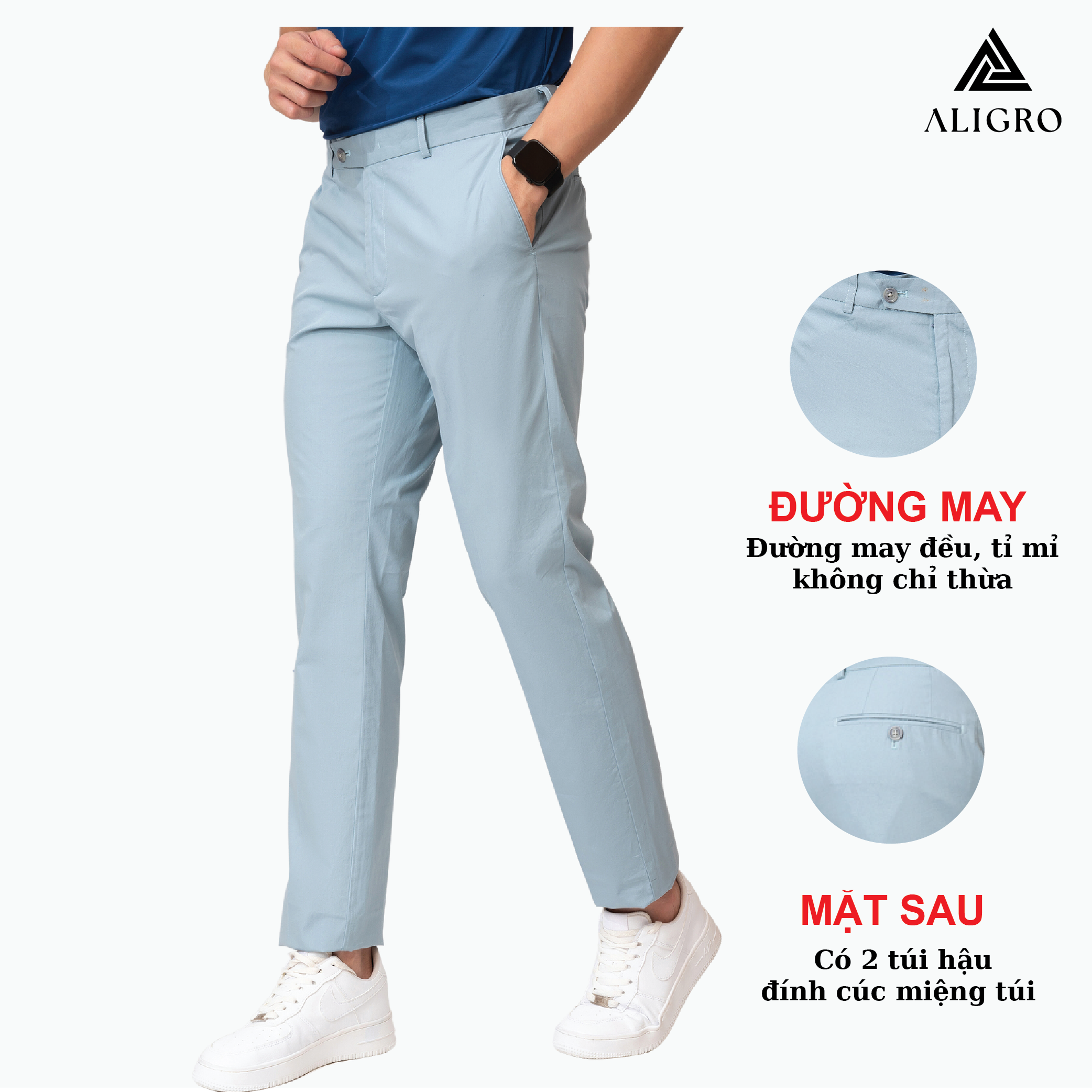✨Quần kaki nam ALIGRO trơn màu xanh da trời, ôm vừa, tôn dáng, thoải mái ALGK028