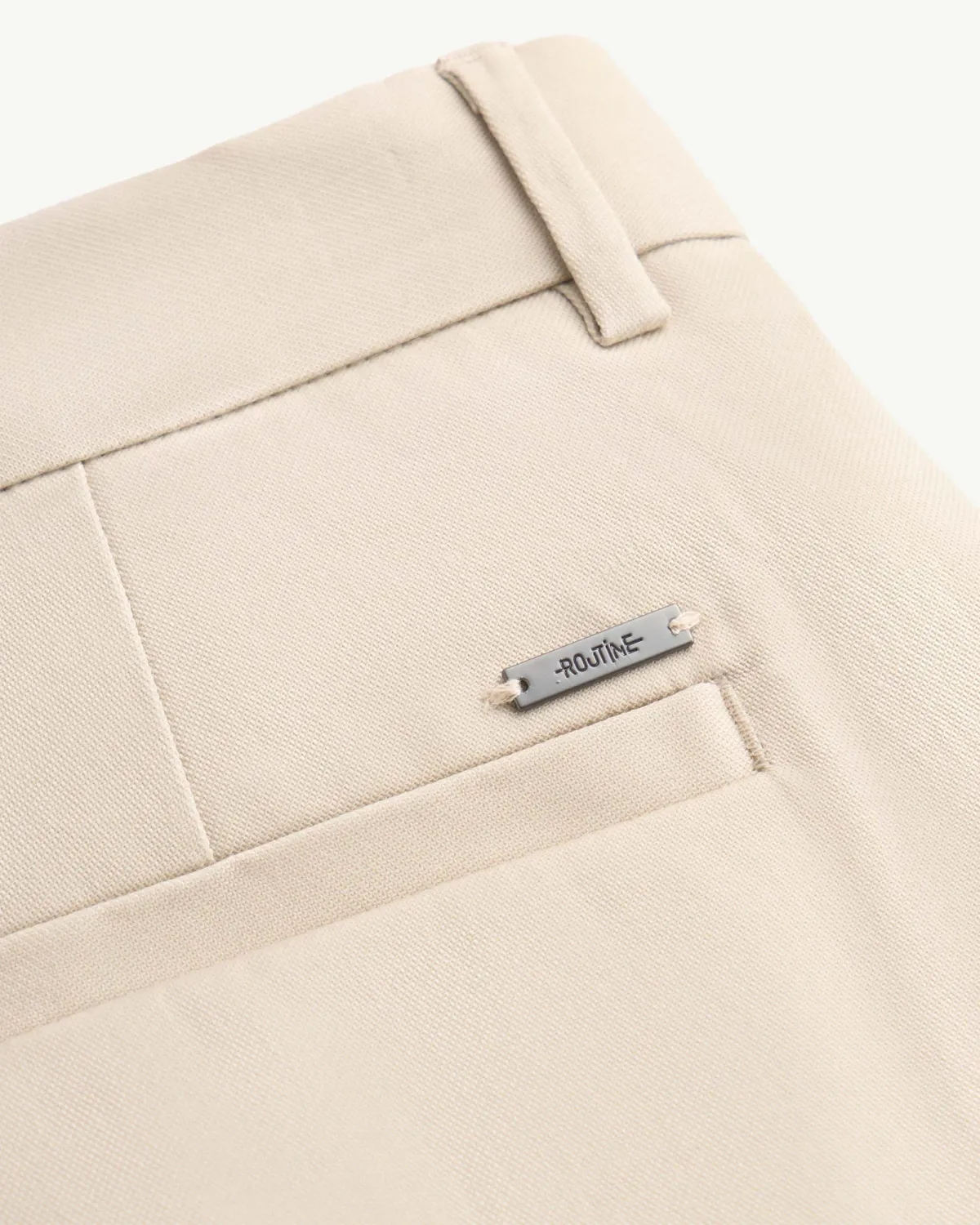 Quần kaki nam đính nhãn kim loại Form Slim cropped - RT 10S25PCA002 | ROUTINE CÀ MAU Đặc điểm nổi bật Form : Slim cropped Fabric : Cotton Spandex Gender: Nam Collection: Essential 25 Sản