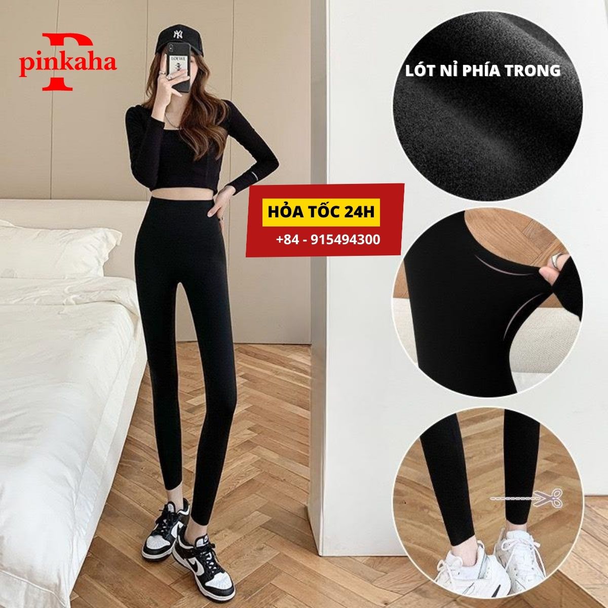 - Tên Sản Phẩm :Quần Legging Nữ Dài Lót Nỉ Dày Dặn Mặc Lên Ôm Dáng Nâng Mông Lưng Siêu Cao Dấu Bụng PINKAHA Cao Cấp