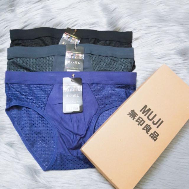 Hộp 5 quần lót nam tam giác Muji nhật lưới, Quần Sịp/quần xì Nam thông hơi thoáng khí kháng khuẩn Xuất Nhật Size: XL (47-58kg), XXL (58-68kg), XXXL (68-80kg) Chất liệu coton lụa cao cấp