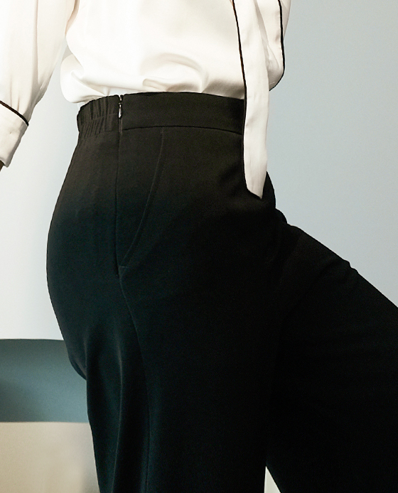 - kiểu dáng quần ống suông - lưng cao, bảng lưng 6cm, cài bằng dây khóa kéo bên hông - đặc biệt nổi bật dù trên nền trắng