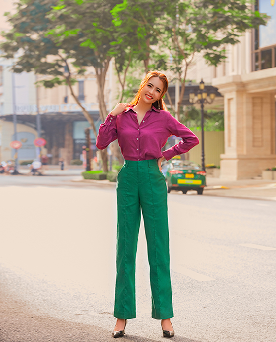 MÔ TẢ Một thoáng hoài cổ trong thiết kế quần ống suông Jazz. Thiết kế ống hơi loe giúp tôn lên vóc dáng của người mặc, lưng cao tạo vòng eo thon, chân trông thẳng và dài hơn, mang đến vẻ đẹp thanh lịch, sang trọng. Kiểu dáng quần ống suông loe bass nhẹ Lưng liền, cao ngay vòng eo 2 túi 2 bên, miệng túi giả phía sau Cài phía sau bằng dây khoá kéo CHẤT LIỆU Polyester Nghệ nhân cắt may: Bảo Yến, Bích Hoà Cắt may thủ công tinh tế tại Hity Atelier, Nha Trang, Việt Nam Người mẫu Phan Duyên cao 165cm, vòng ngực 88cm vòng eo 65cm vòng mông 95cm - người mẫu