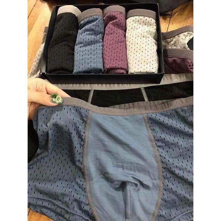 Quần lót nam thông hơi - HỘP 4 CHIẾC - Quần sịp đùi nam Hàng loại 1 Chất Liệu: Siêu mềm, siêu mịn, co giãn thoải mái, thông thoáng mát lạnh - Size XL :45-60kg
