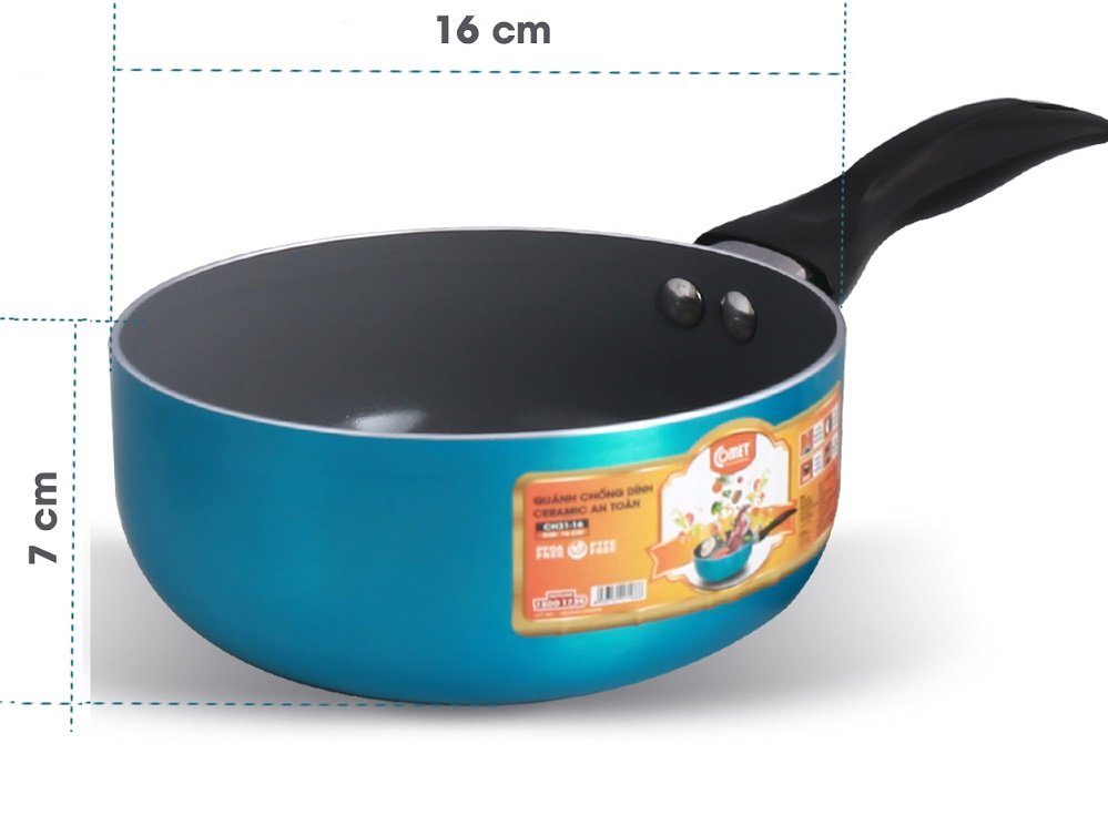 1. Thương hiệu : Comet 2. Sản phẩm :nồi chống dính 3. Mã sản phẩm : CH31-16 4.Kích thước : 16cm 5. Chất liệu : nhôm cao cấp , chống dính ceramic 6. Công dụng