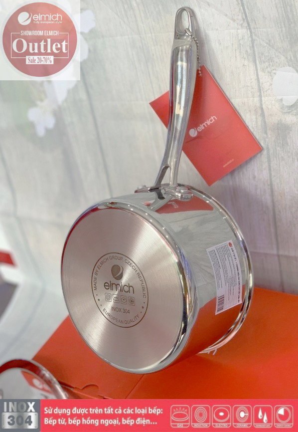 Quánh inox 304 thân đúc đáy liền Elmich Trimax Baby EL-3848 đường kính 14cm vung kính đáy từ