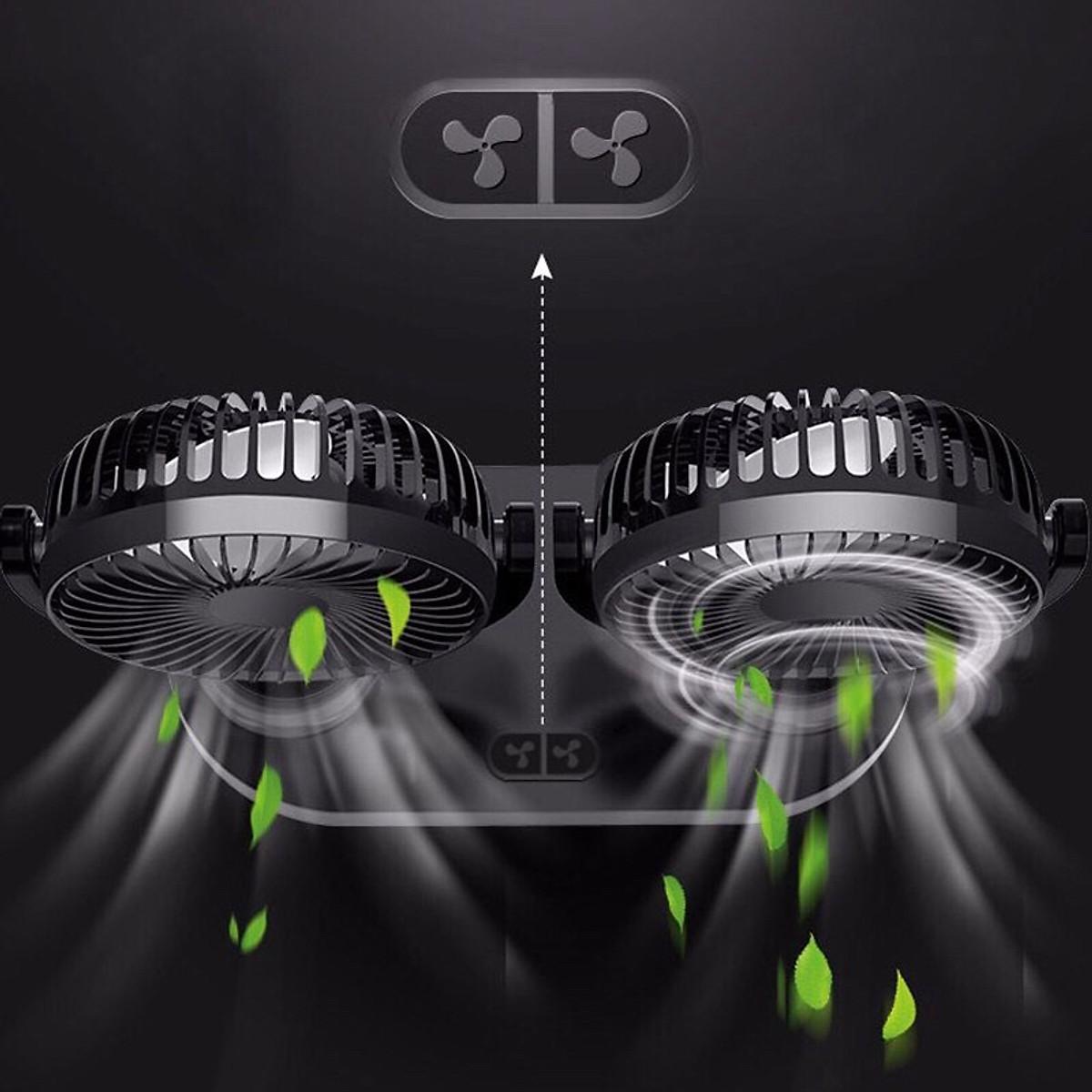 Quạt Đôi Trên Ô Tô 12V/24V ,Quạt Đôi Mini Cho Xe Hơi Xoay 360 Độ,Đầu Cắm Sạc USB Tiện Lợi - Kiên BRL