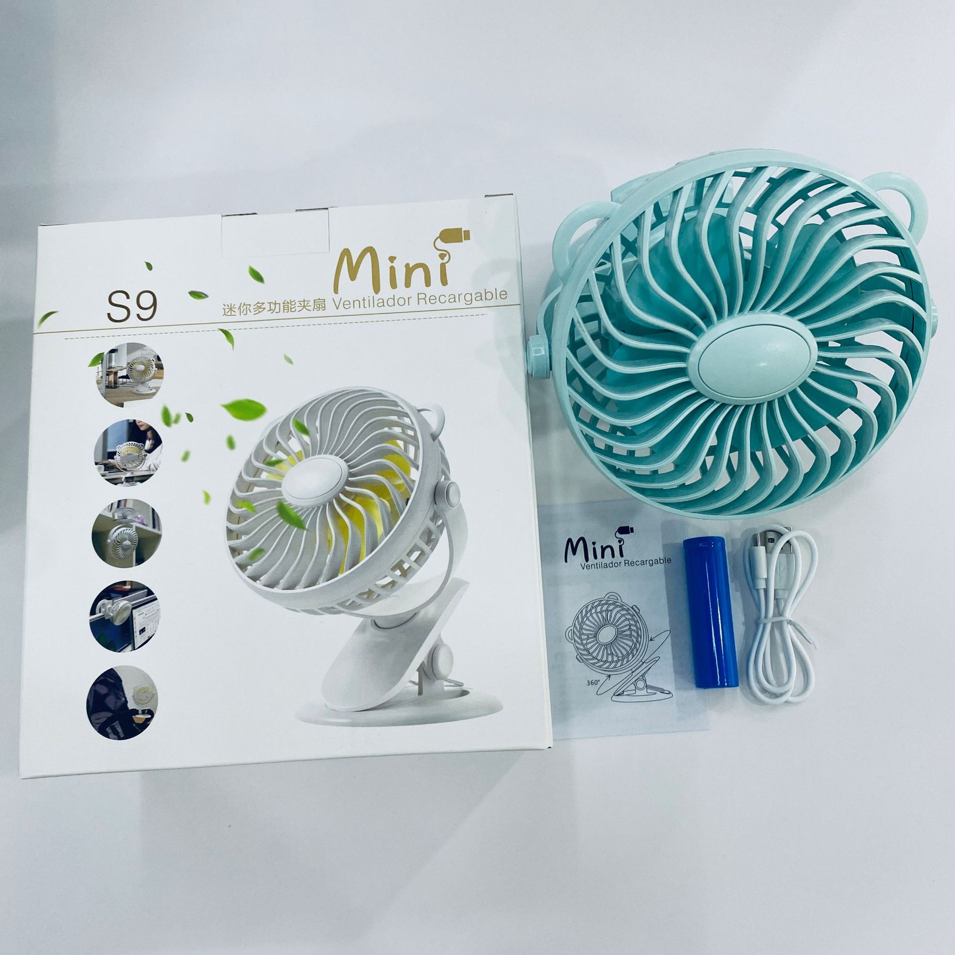 Quạt sạc mini để bàn S9 1200mAh Xoay 360 độ Chạy 3-6 giờ liên tục Quạt sạc đế kẹp đa năng