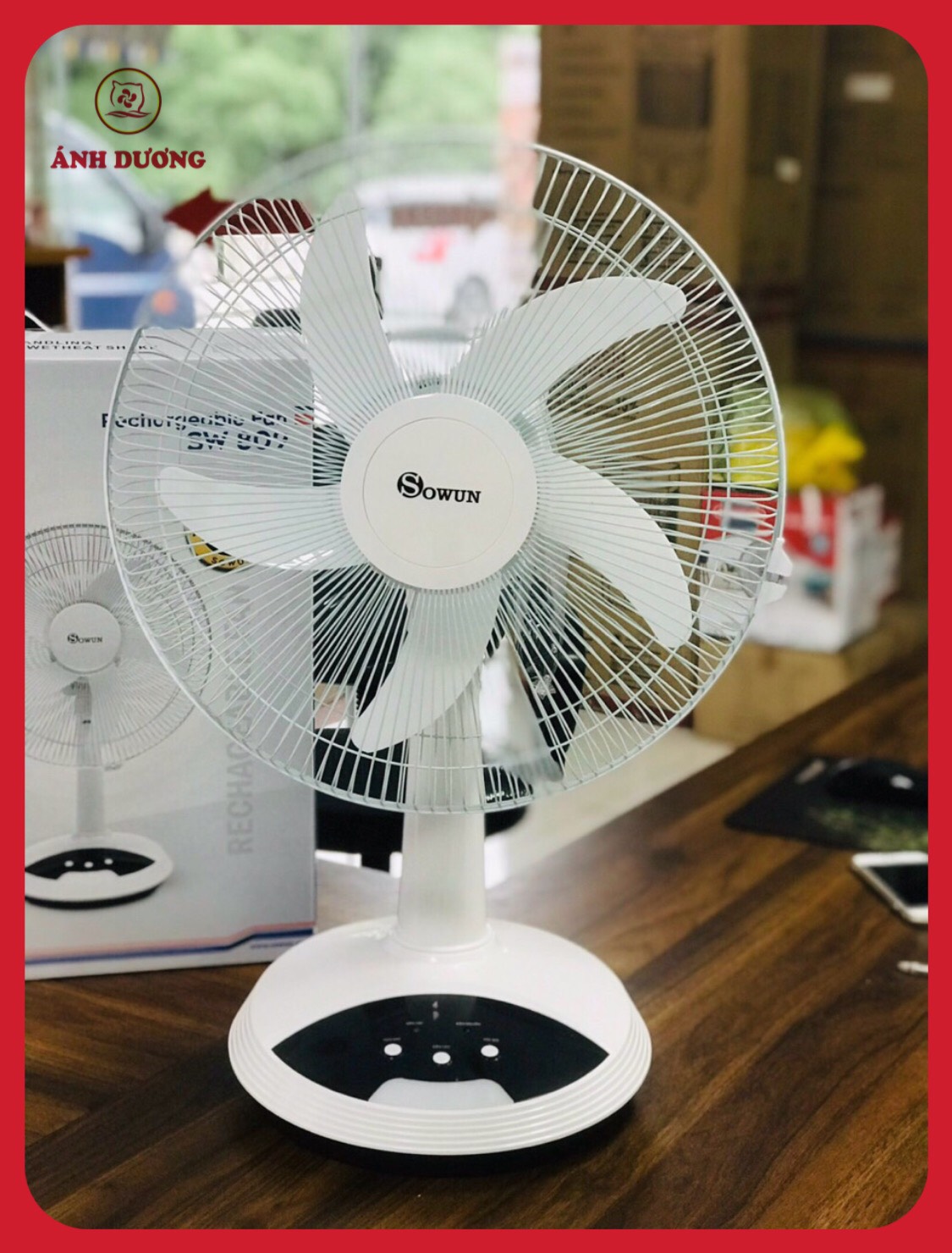 - Quạt sạc điện Sowun SW 809 sử dụng pin sạc 6V – 7.0Ah, có khả năng dự trữ điện năng sử dụng khi mất điện. Đây là loại pin chất lượng cao nên bạn yên tâm sử dụng lâu dài. Quạt có 3 tốc độ gió nhẹ vừa và mạnh, thời gian sử dụng pin khoảng 5 tiếng (tùy chế độ sử dụng), đảm bảo cho bạn có giấc ngủ ngon ngay cả khi mất điện.