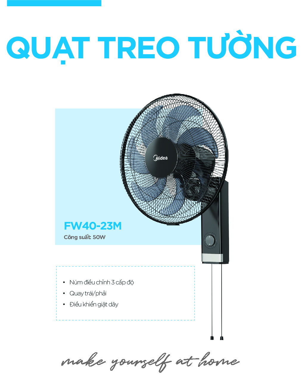 ✨Quạt Treo Tường 7 Cánh Midea FW40-23M (Hàng Chính Hãng, Công Suất 50W, Chỉnh Gió 3 Tốc Độ)